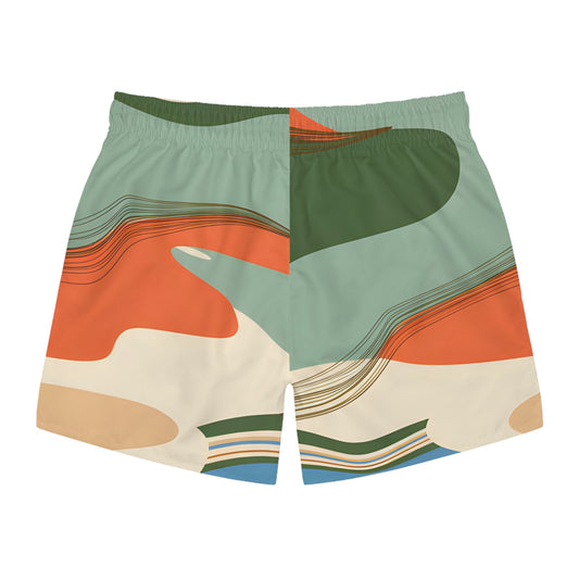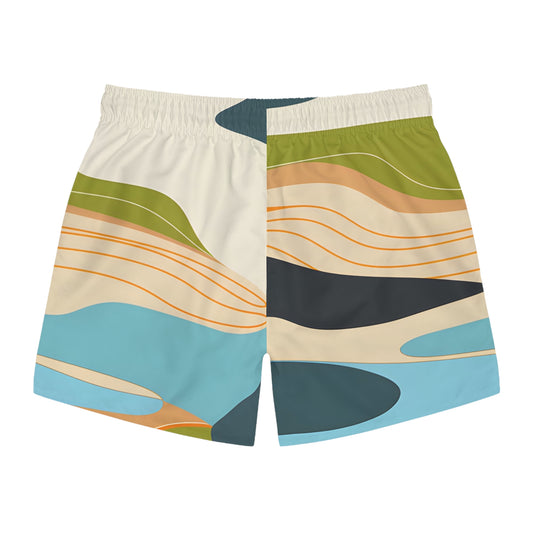 Abstract Lagoon Line Swim Trunks, Summer Swimwear for Men, Beachwear Shorts,