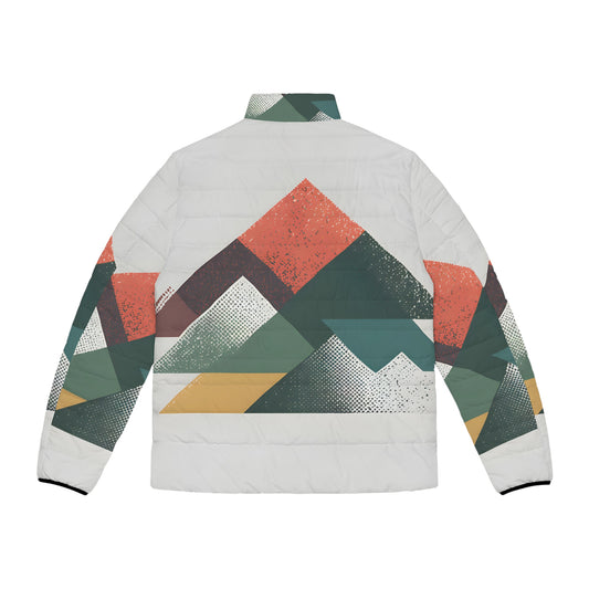 80's Retro Mountain Puffer Jacket Men’s Geometric Winter Coat Full Zip Outdoors