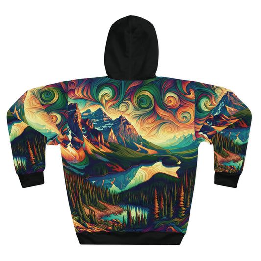 All Over Print Hoodie Unisex Mountain Lake Rockies Graphic Pullover Outdoors