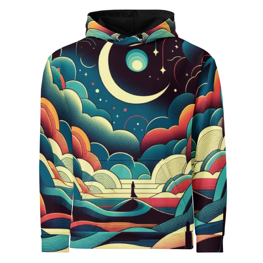Celestial Eclipse Over Ocean Hoodie – Unisex All-Over Print Abstract Graphic Pullover, Cosmic Night Sky Design