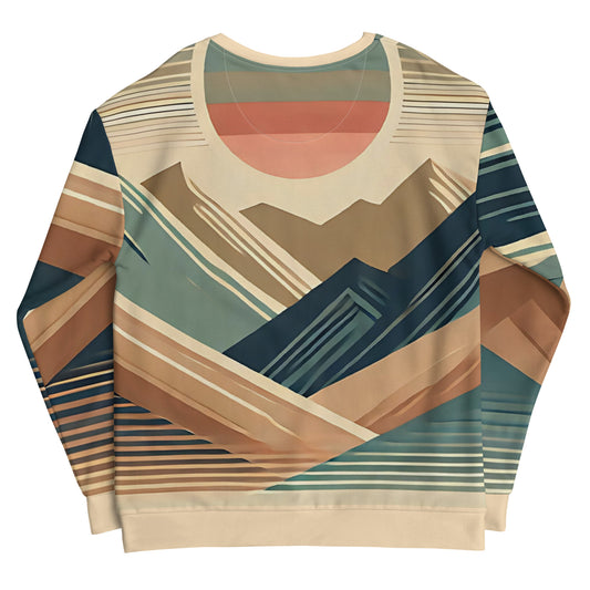 Desert Sunrise Abstract Mountain Sweatshirt – Unisex All-Over Print Pullover, Retro Earth Tone Design