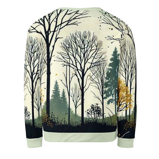 Forest Silhouette Sweatshirt – Unisex All-Over Print Nature-Inspired Pullover, Tree Line Graphic Design