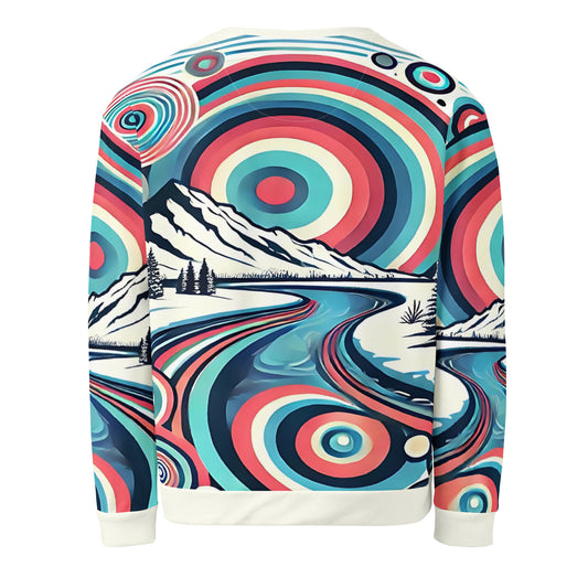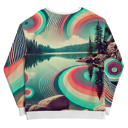 Psychedelic Forest Lake Sweatshirt – Unisex All-Over Print Graphic Pullover, Retro Nature Design