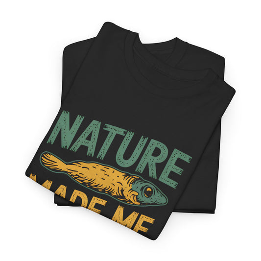 Nature Made Me Do It Graphic Fishing T-Shirt Wild Outdoorsy Apparel Short Sleeve