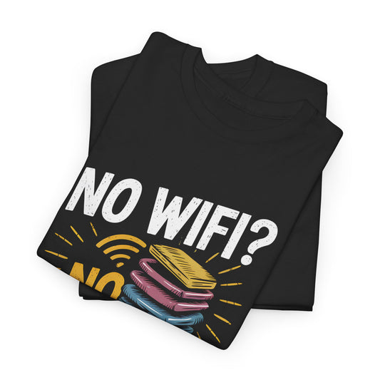 No Wifi No Problem Funny Reading Graphic T-Shirt Gift Book Lovers Short Sleeve