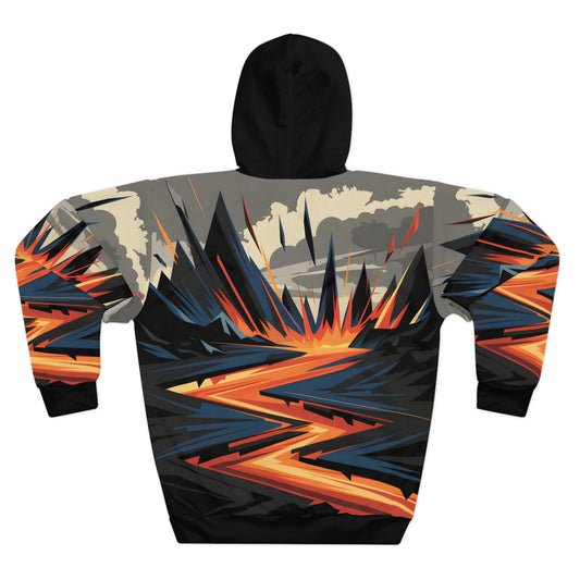 Obsidian Flare All Over Print Pullover Hoodie for Adventure Travel Enthusiasts