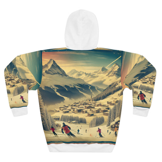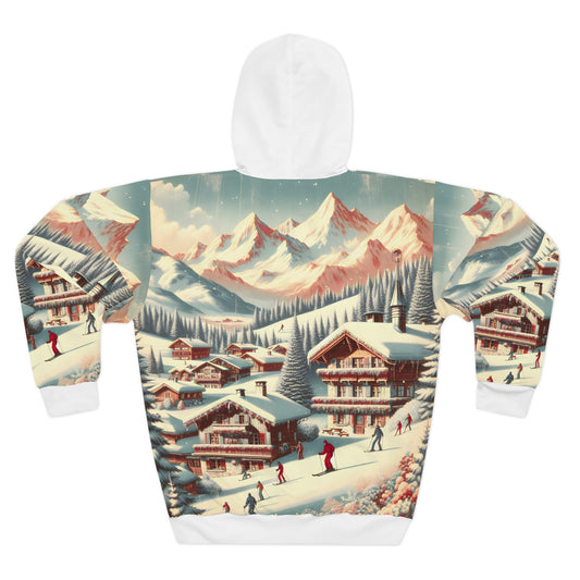 Vintage Ski Resort Style All Over Print Hoodie Winter Mountain Outdoor Travel