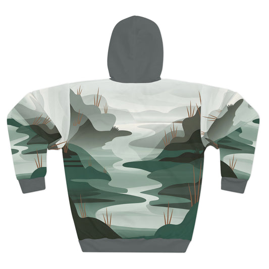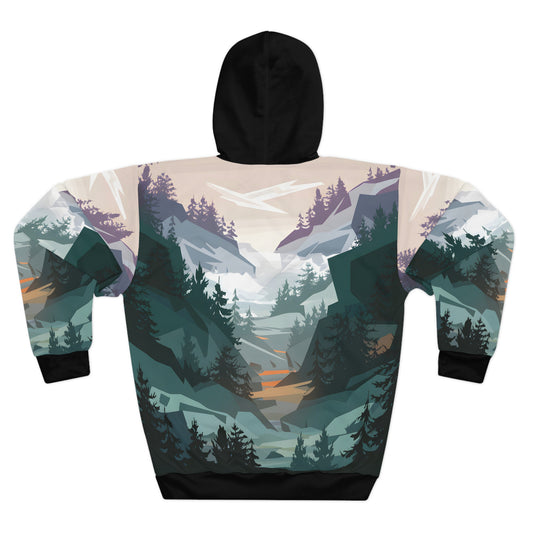 Misty Divide Mountain Art All Over Print Hoodie Outdoor Apparel Travel Wear