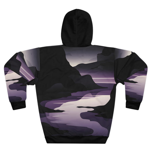 Obsidian Mist All-Over Print Pullover Hoodie Perfect for Outdoor Adventures