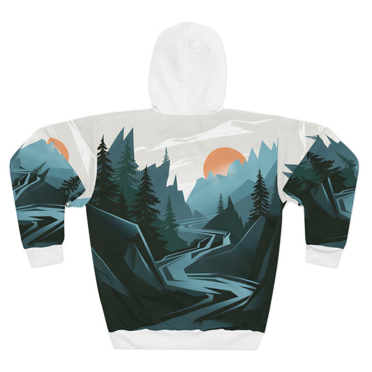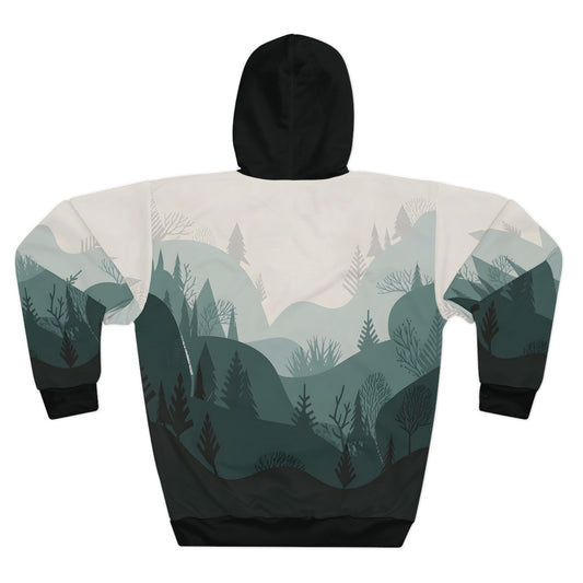 Misty Echoes Hoodie All Over Print Nature Landscape Pullover Forest Hiking