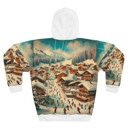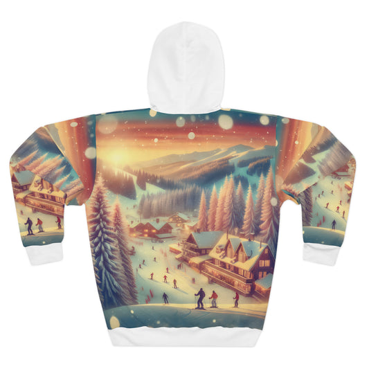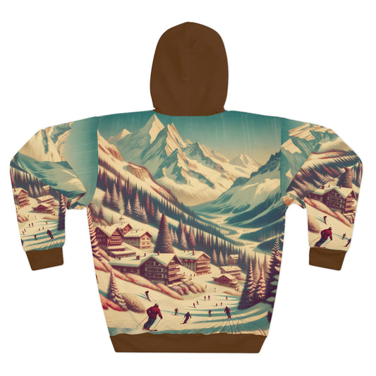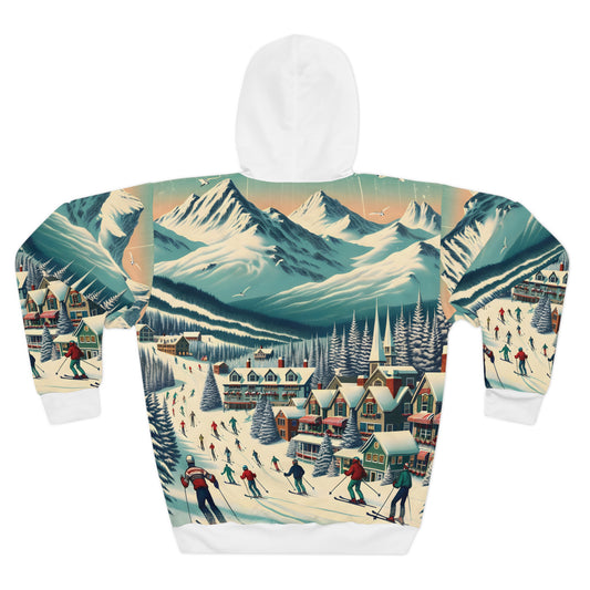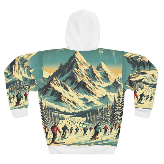 Retro Ski Hoodie All Over Print Mountain Snow Scene Winter Sports Pullover