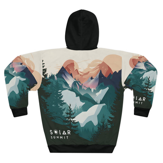 Solar Summit Hoodie All Over Print Mountain Graphic Nature Hiking Travel Unisex