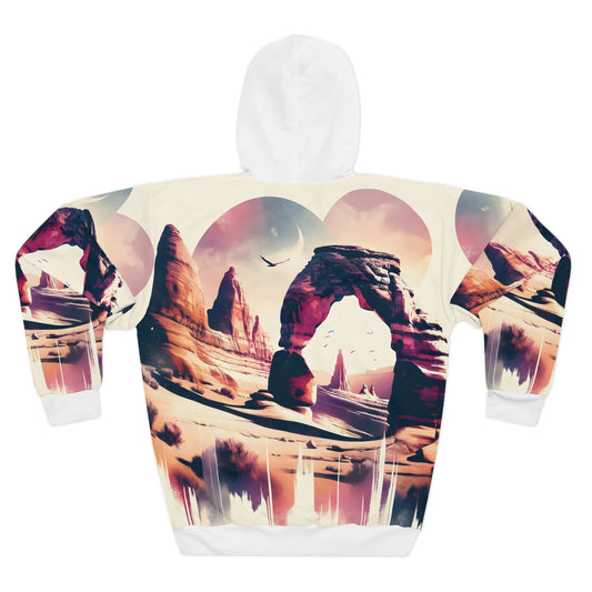Desert-Inspired All-Over Print Hoodie Featuring Dramatic Landscape Art