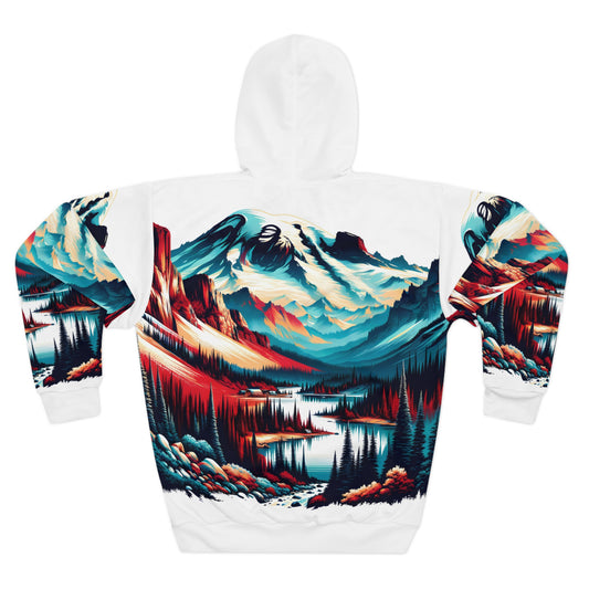 All Over Print Hoodie Unisex Mountain Lake Rockies Graphic Pullover Outdoors