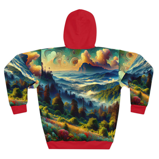 Smoky Mountains All-Over Print Hoodie Mountain Waterfall Artwork Sweatshirt