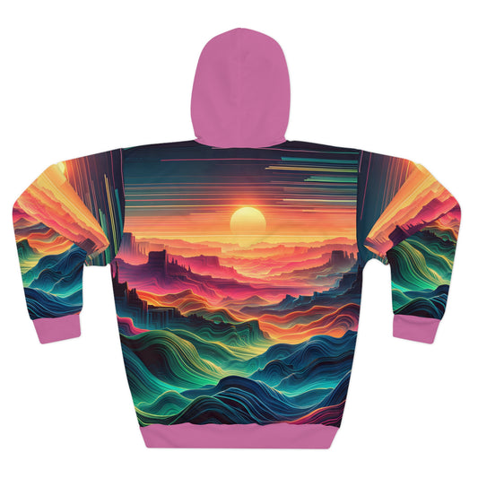 Desert-Inspired All-Over Print Hoodie with Psychedelic Sunset Design