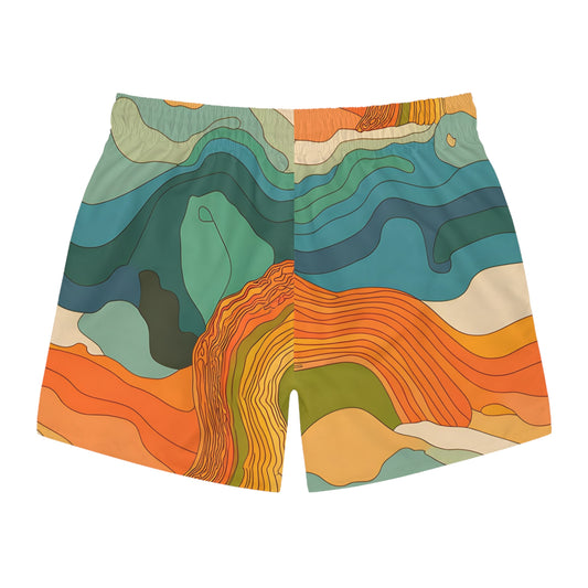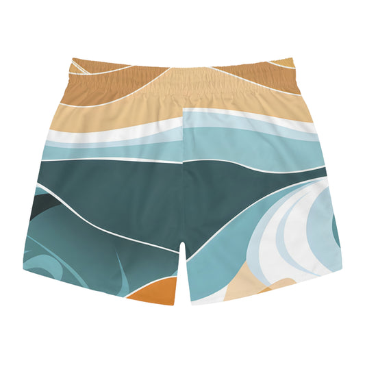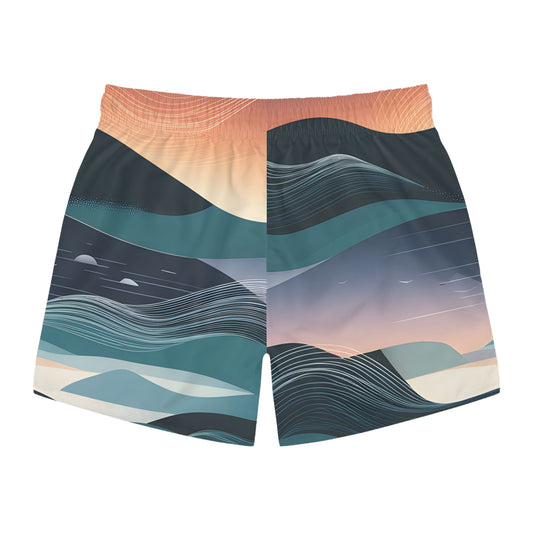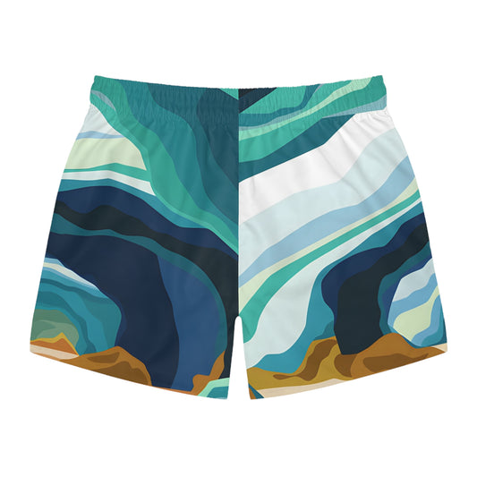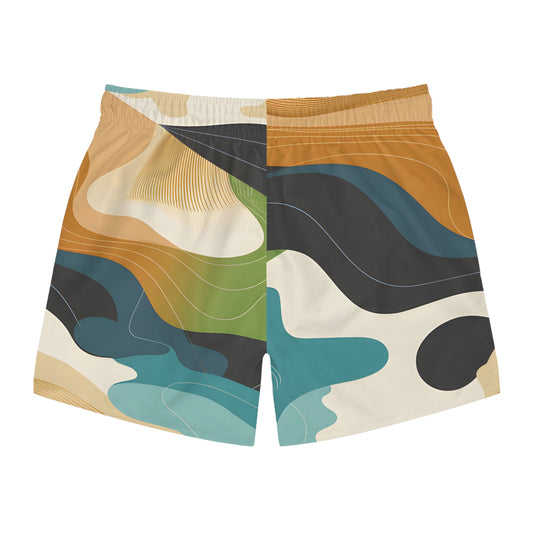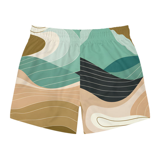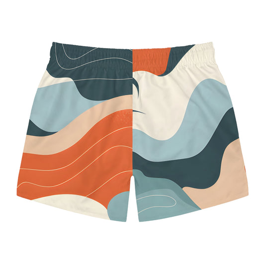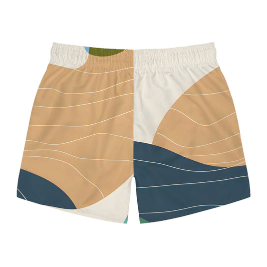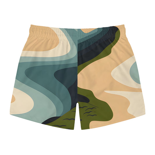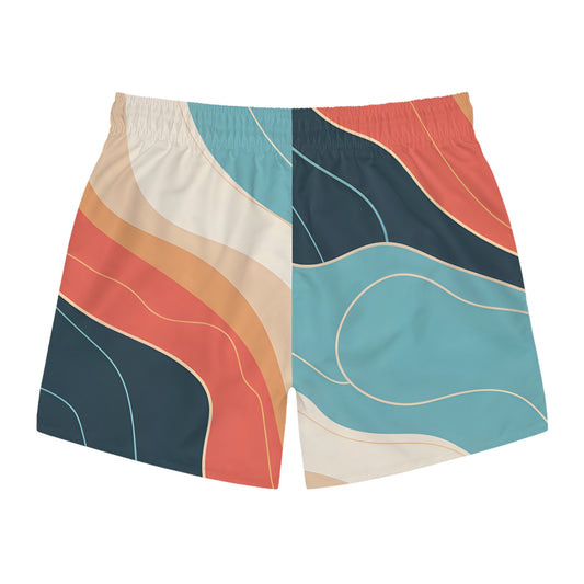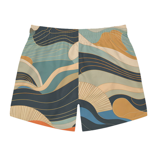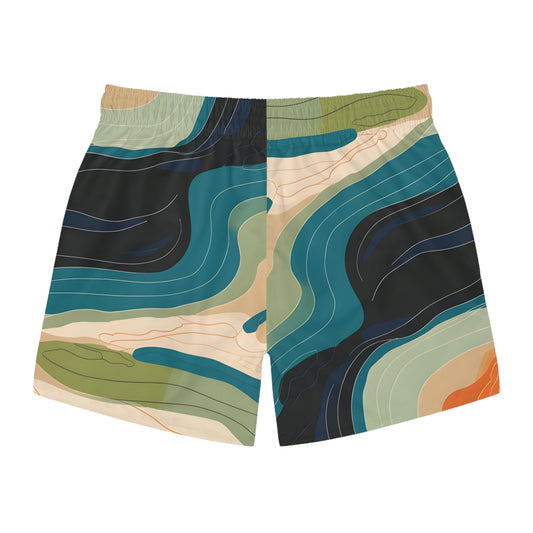 Abstract Lagoon Line Swim Trunks, Summer Swimwear for Men, Beachwear Shorts,