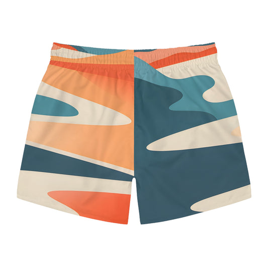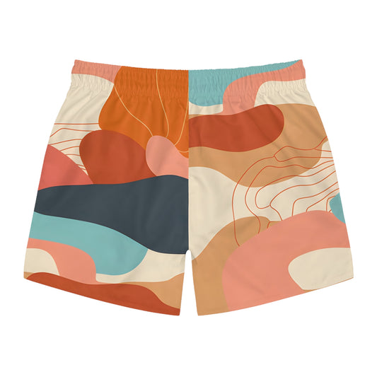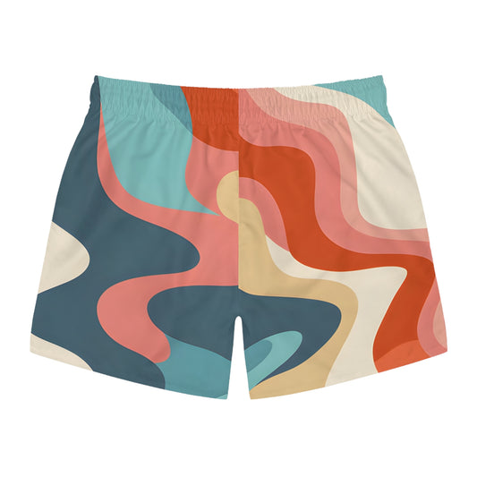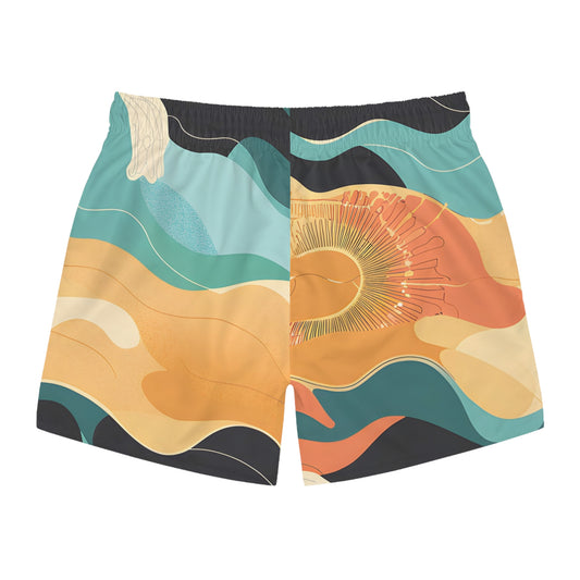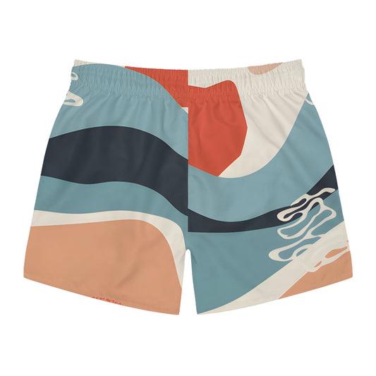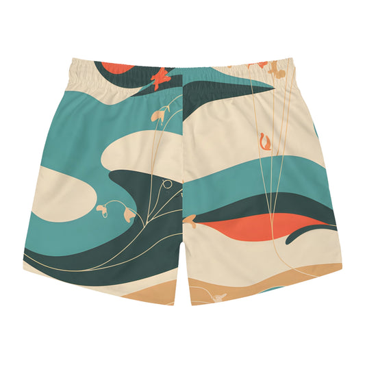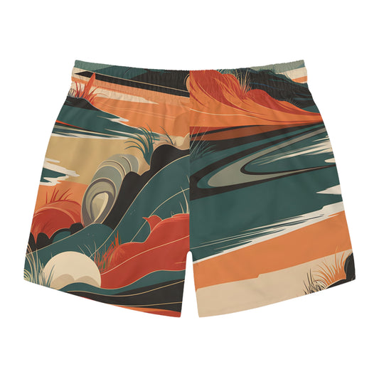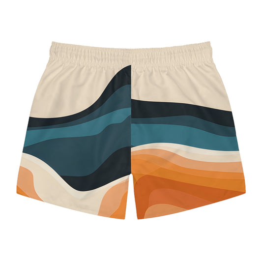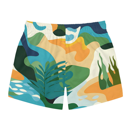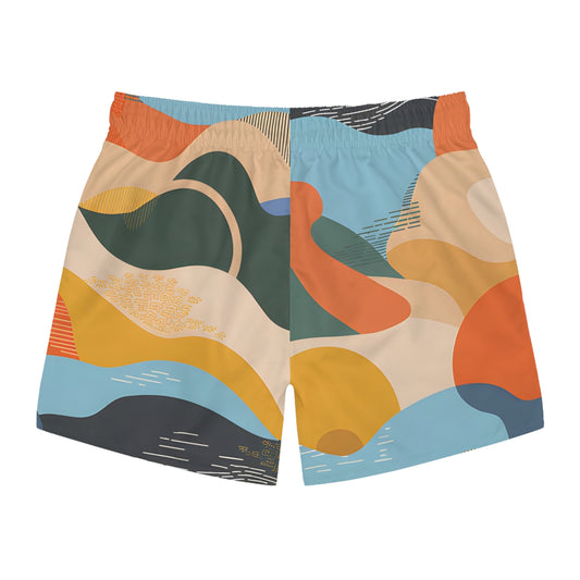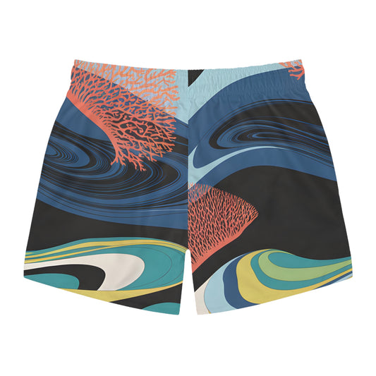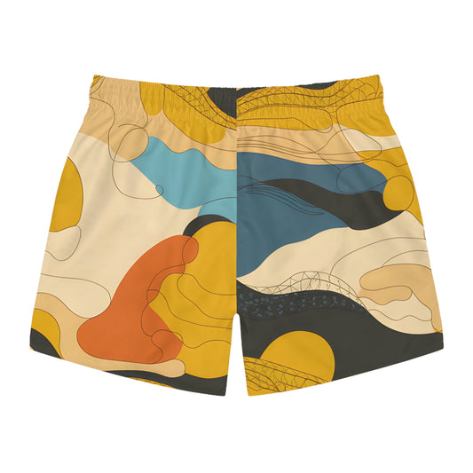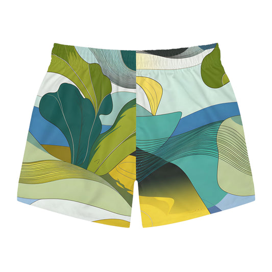 Abstract Lagoon Line Swim Trunks, Summer Swimwear for Men, Beachwear Shorts,