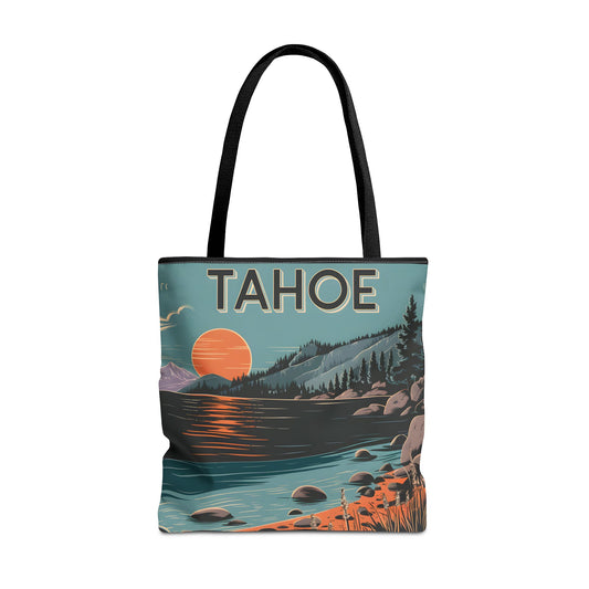 Vintage Tahoe Tote Bag All Over Print Lake Sunset Hiking Gift Outdoors Art