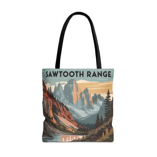 Sawtooth Range Mountains All Over Print Tote Bag Outdoor Adventure Eco-Friendly