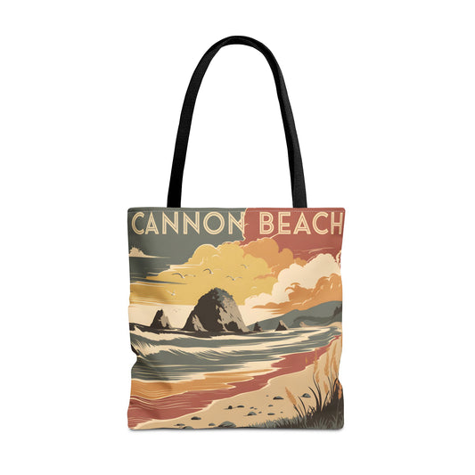 Cannon Beach Tote Bag All Over Print Coastal Art Ocean Scene Adventure Traveler