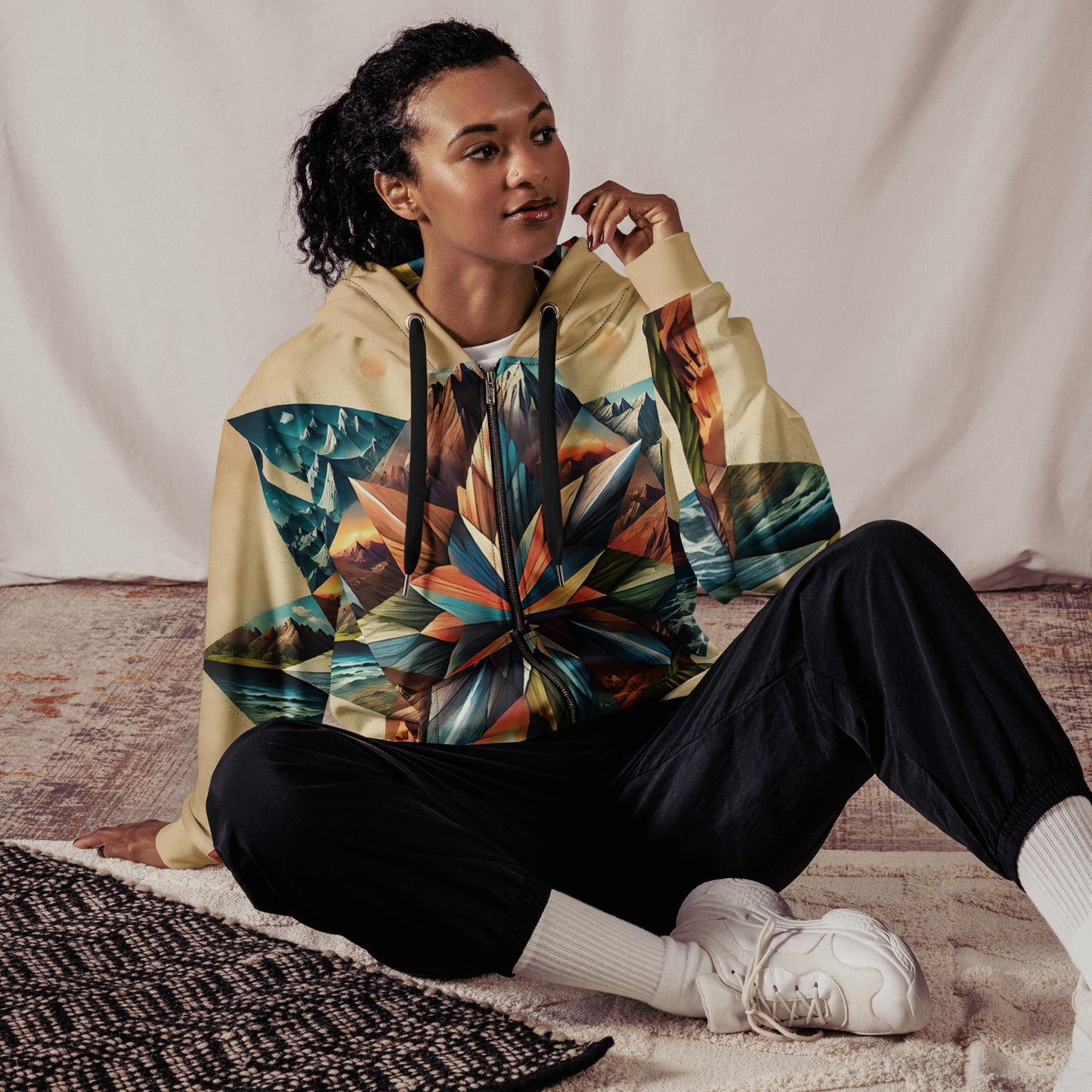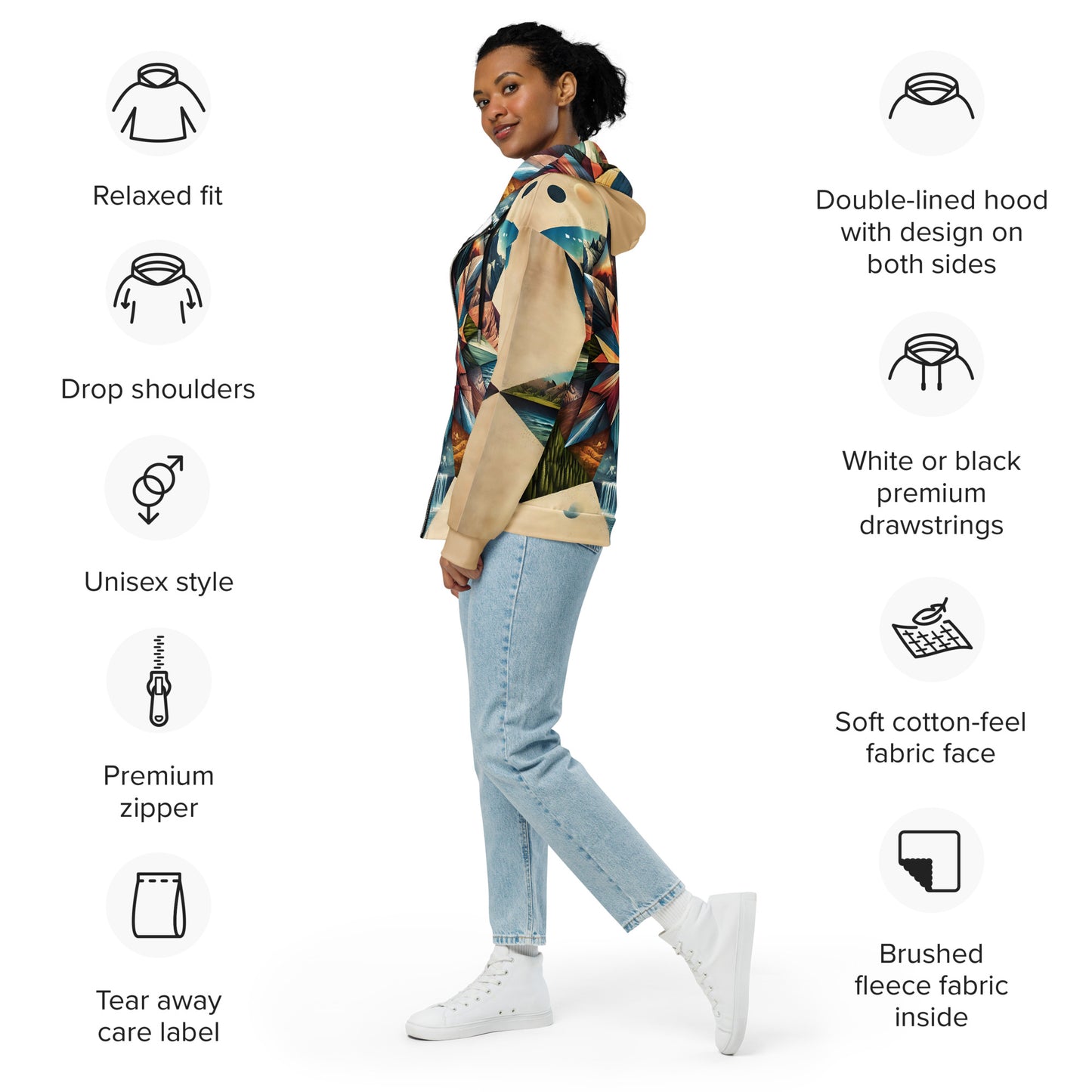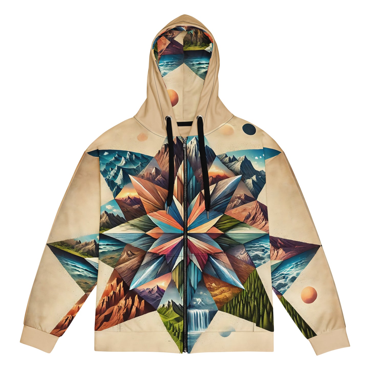 Abstract Mountain Galaxy Full-Zip Hoodie – Unisex All-Over Print Graphic Hoodie, Cosmic Landscape Design