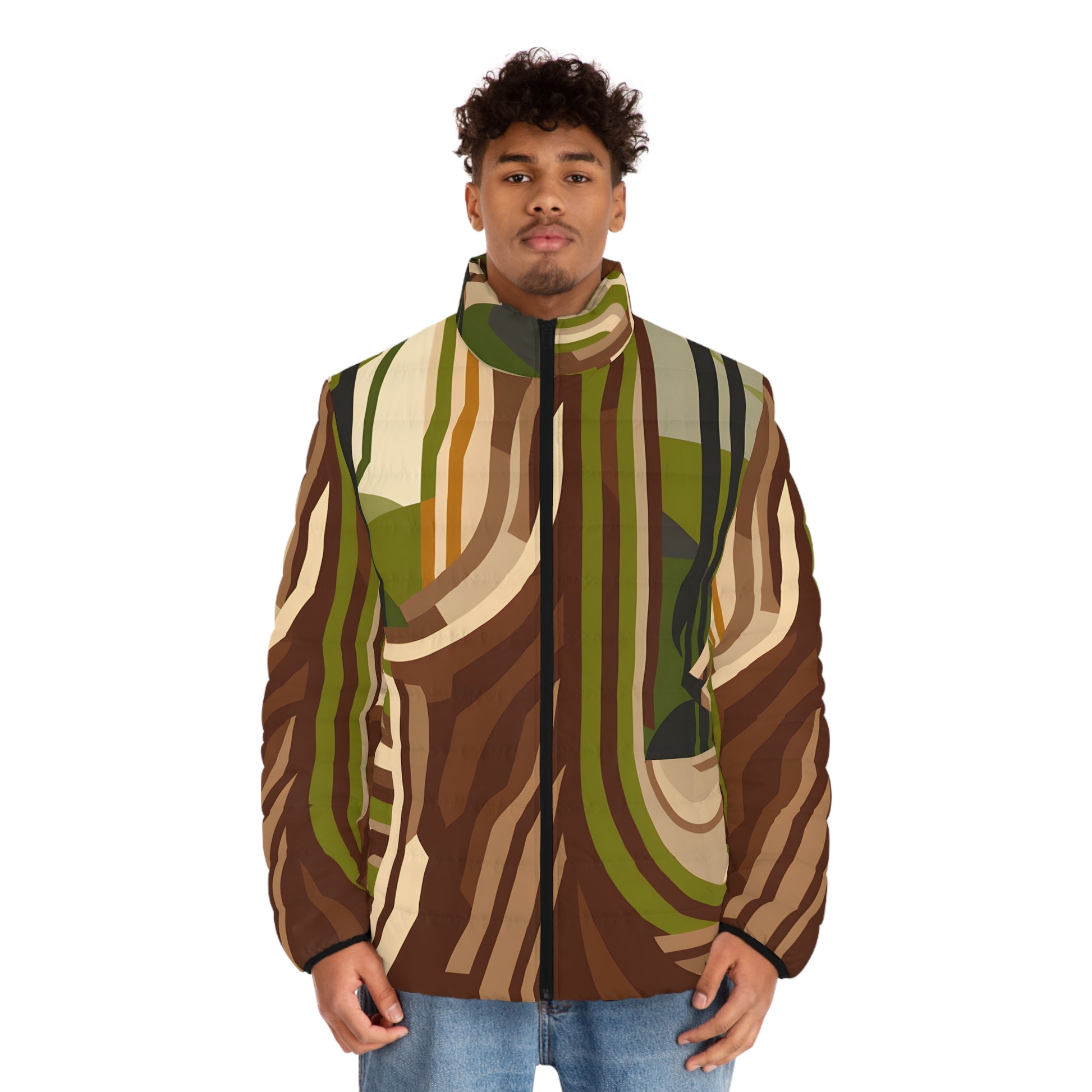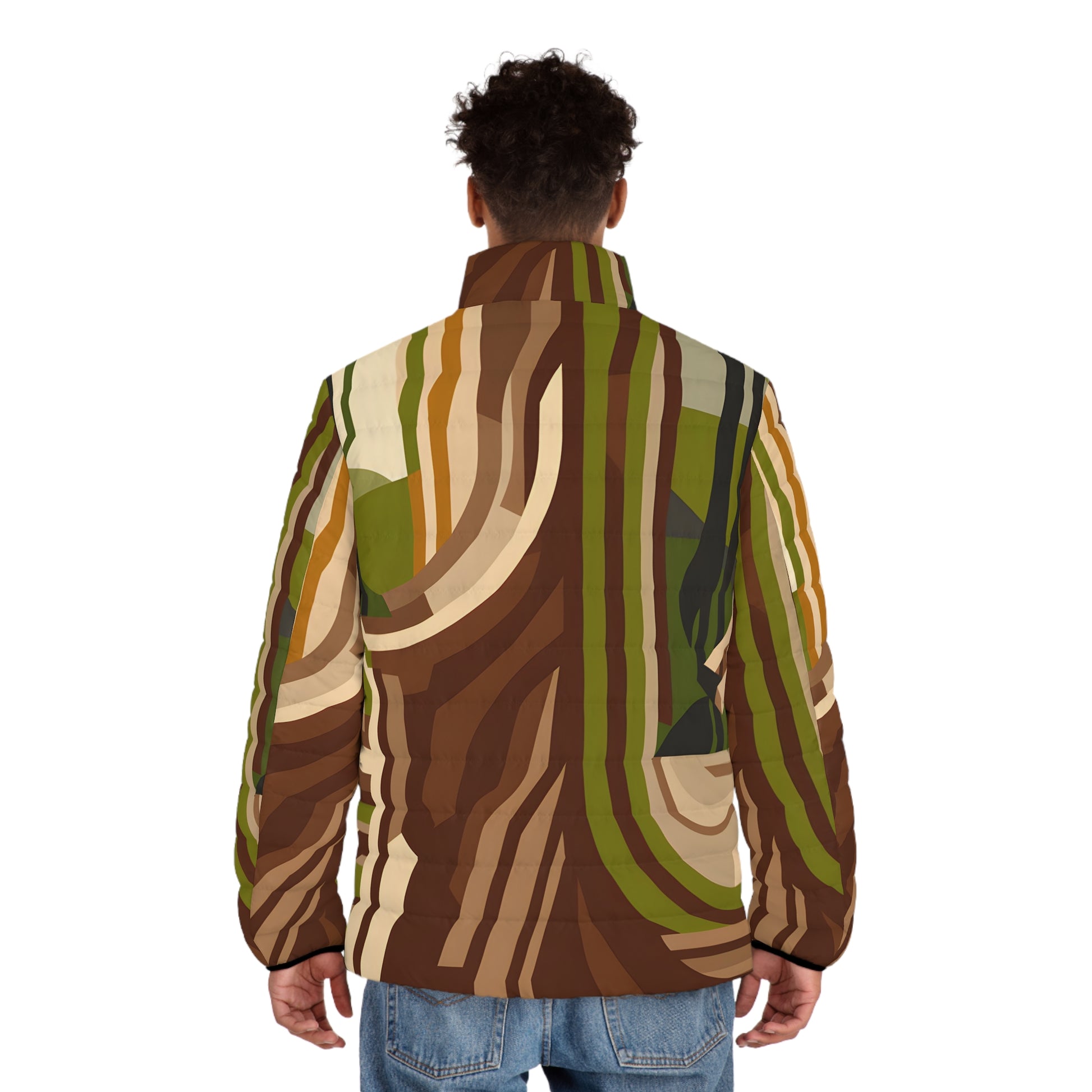 Abstract Timber Puffer Jacket Outdoor Apparel Trendy Winter Outerwear Warm