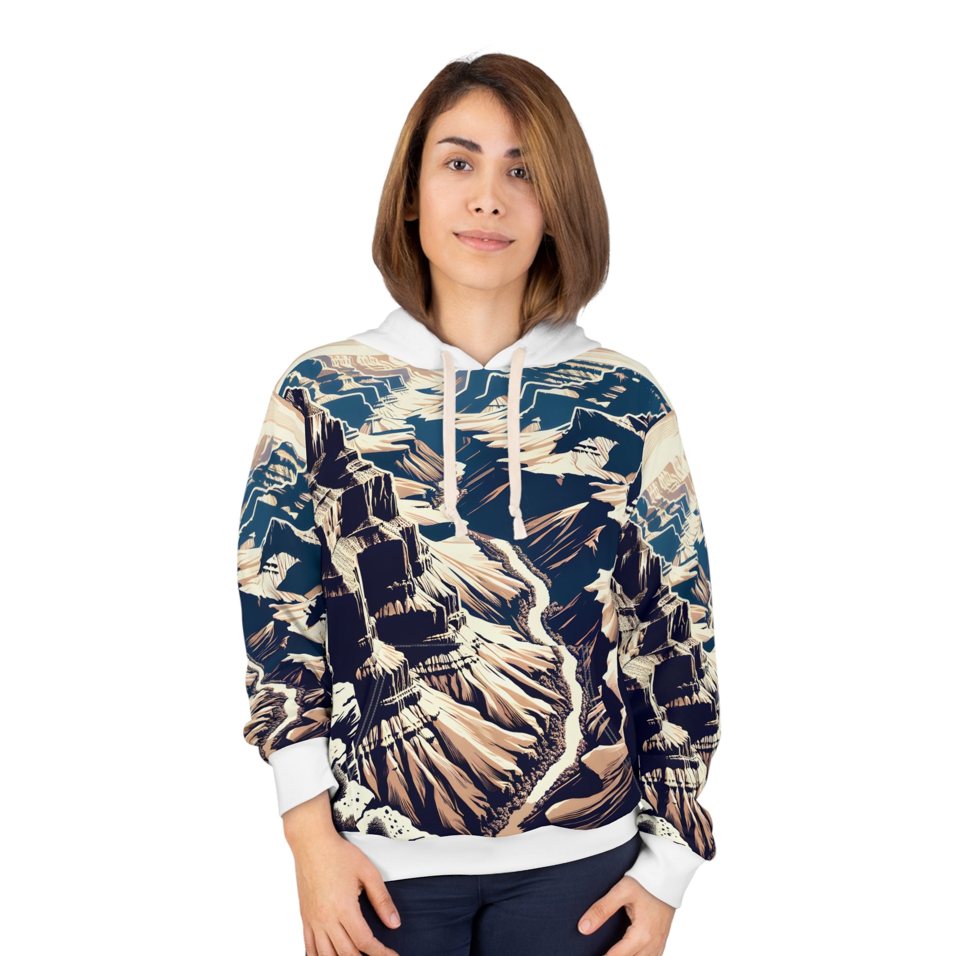 Embrace the spirit of adventure with our All-Over Print Hoodie, showcasing the breathtaking beauty of Grand Canyon National Park. This cozy unisex pullover combines style and comfort, making it the perfect companion for any outdoor escapade or relaxed day at home. Elevate your wardrobe and celebrate nature’s wonders today!