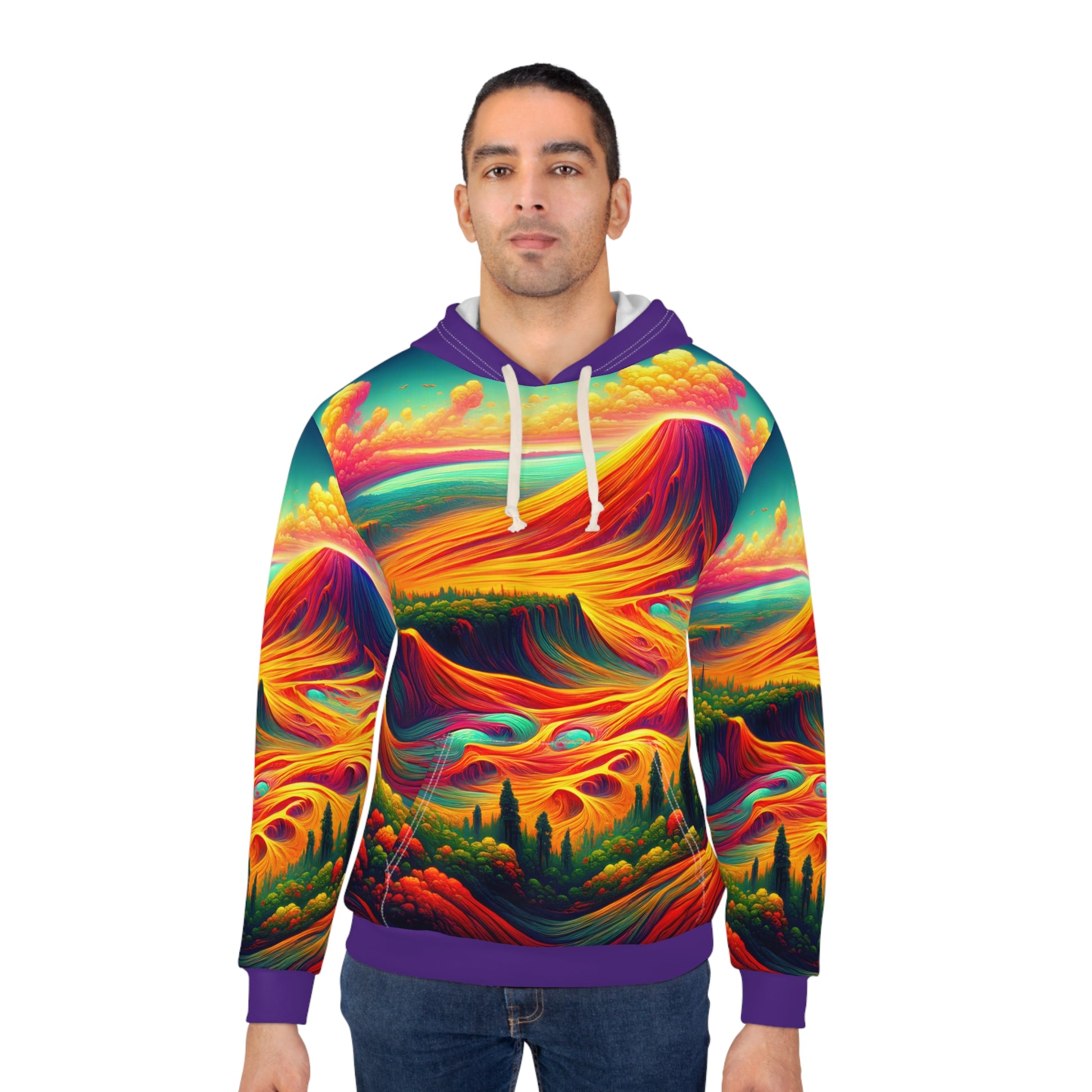 Unleash your adventurous spirit with our All-Over Print Hoodie, inspired by the breathtaking landscapes of Hawai'i Volcanoes National Park. Crafted for ultimate comfort, this unisex pullover features vibrant volcanic designs that evoke the island's beauty. Perfect for outdoor explorations or cozy nights in!