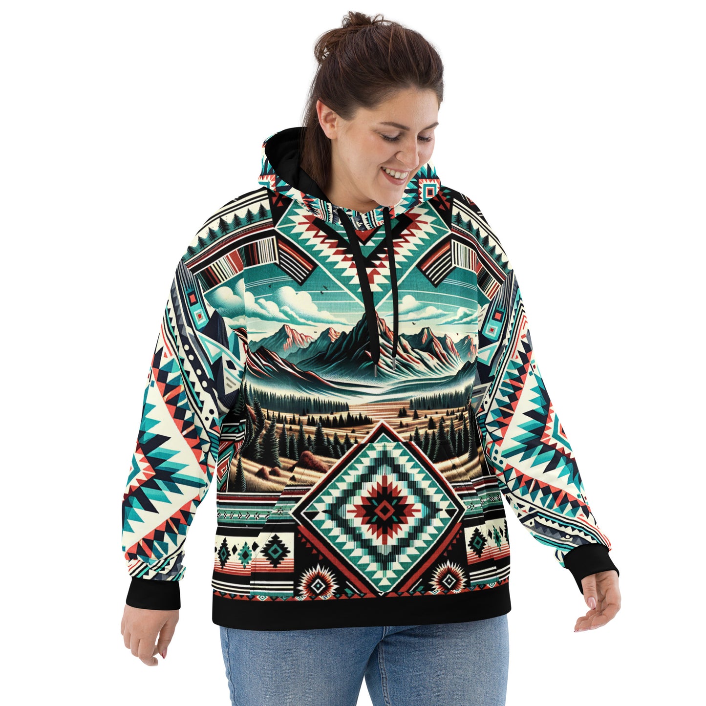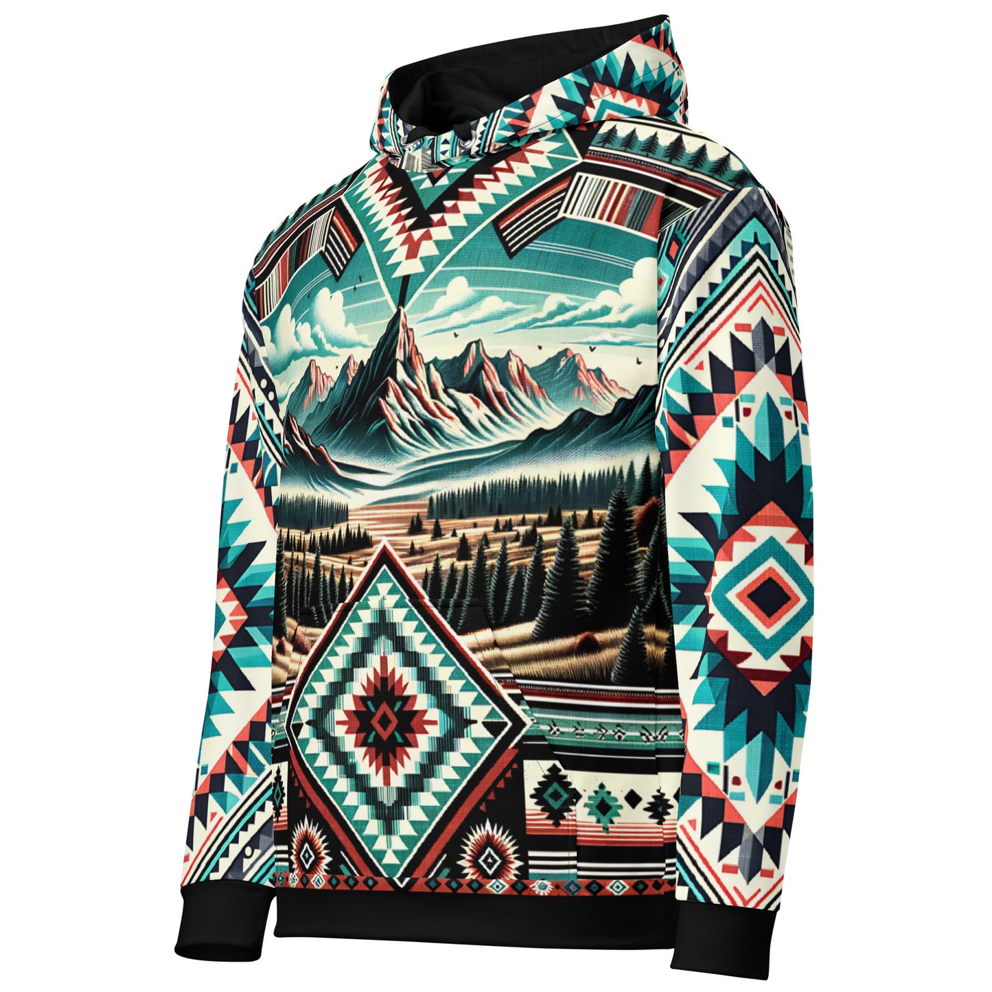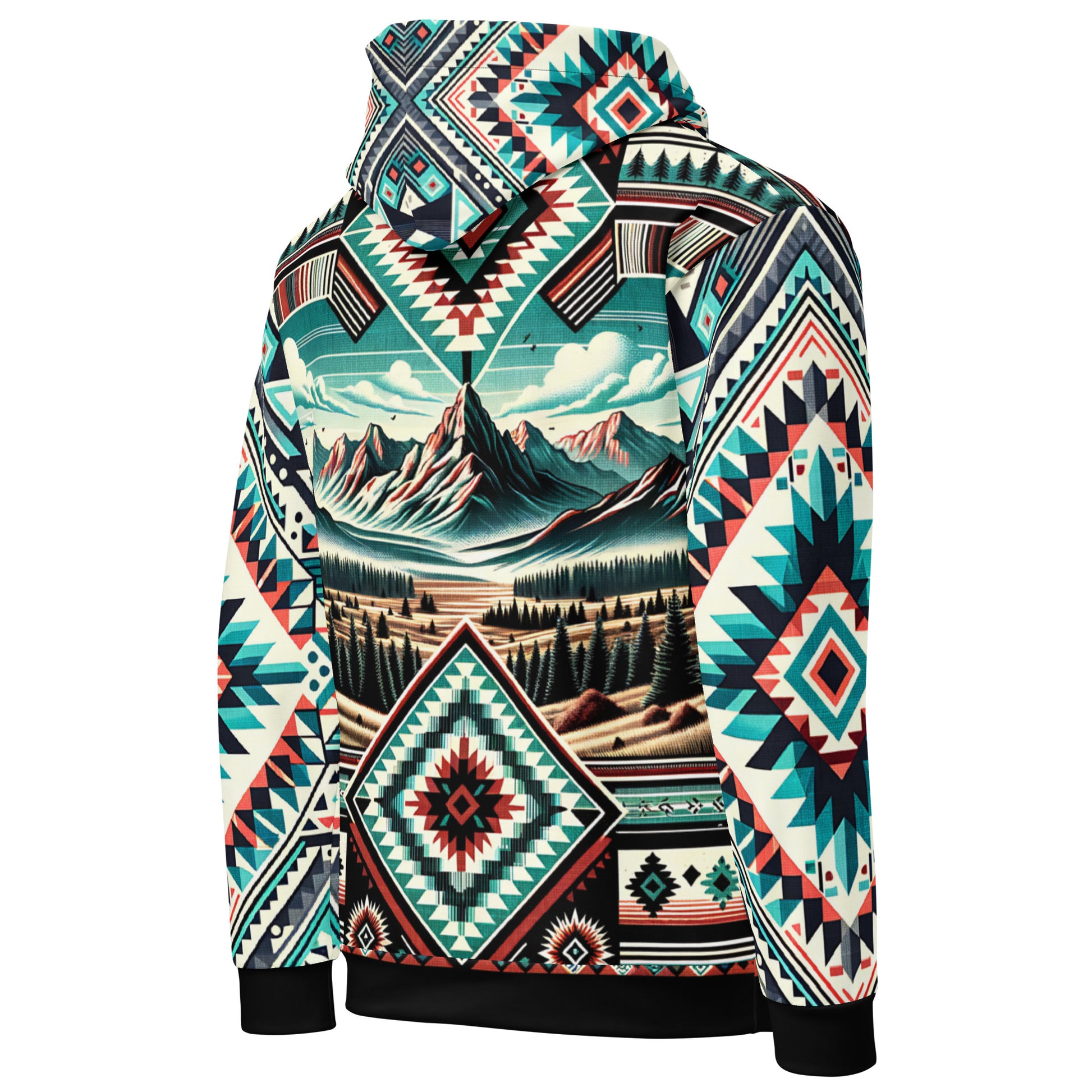 Aztec Mountain Hoodie - Unisex Boho All-Over Print Adventure Pullover