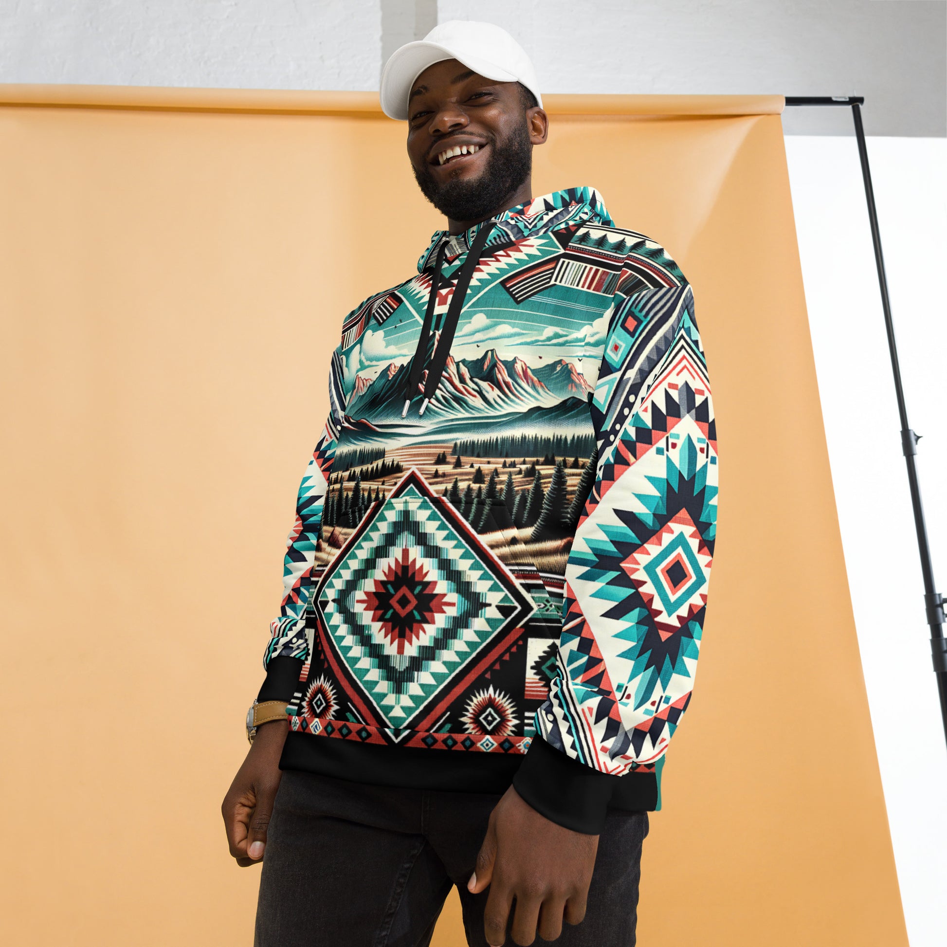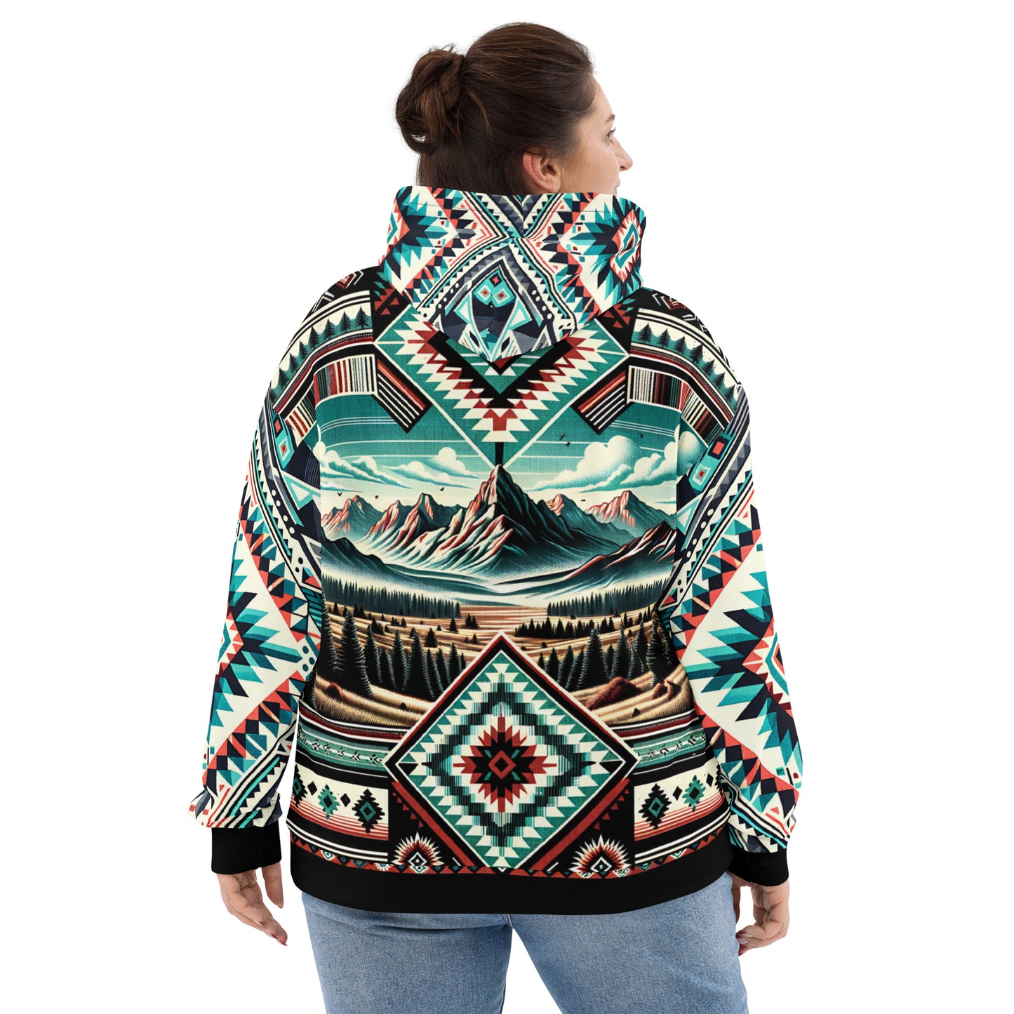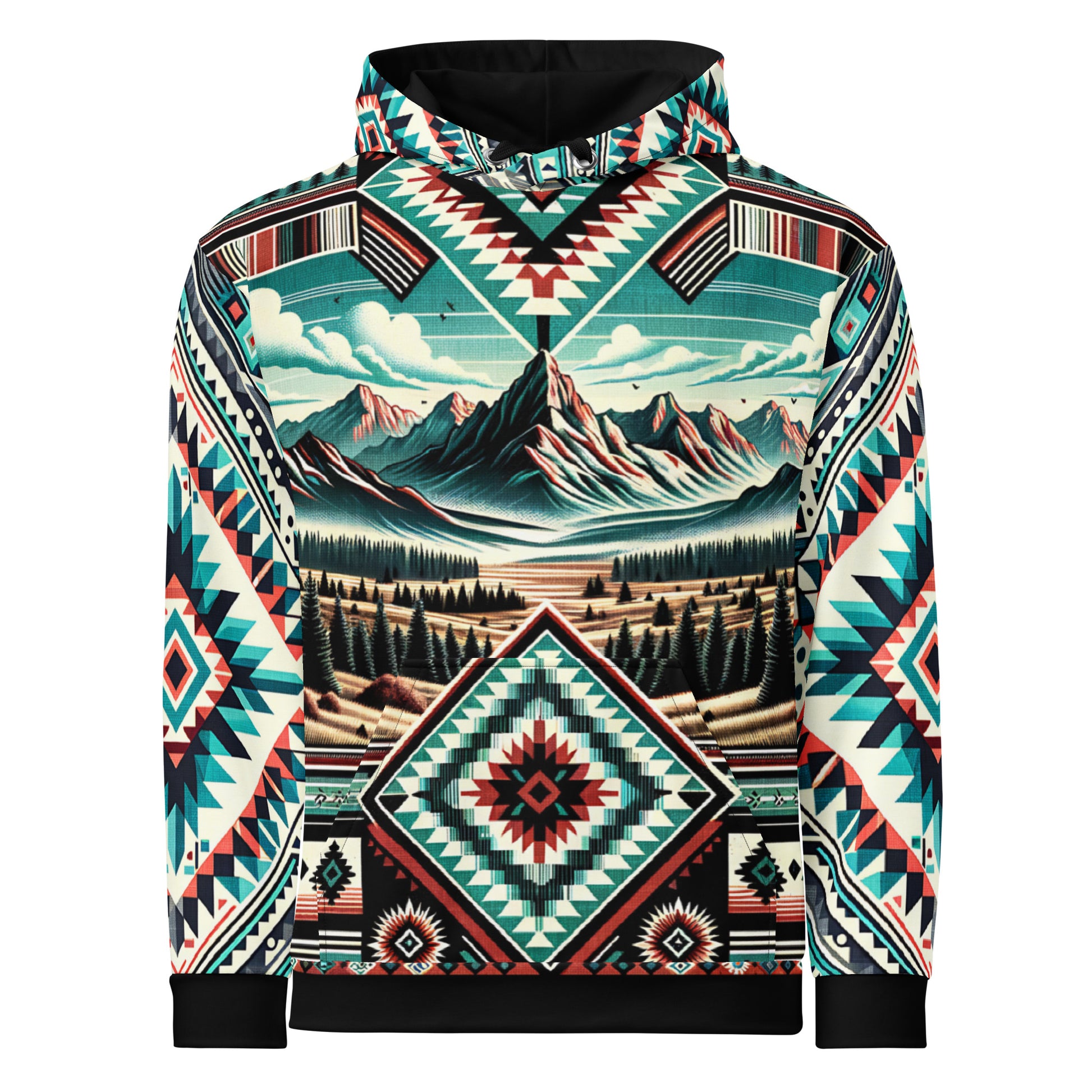 Aztec Mountain Hoodie - Unisex Boho All-Over Print Adventure Pullover