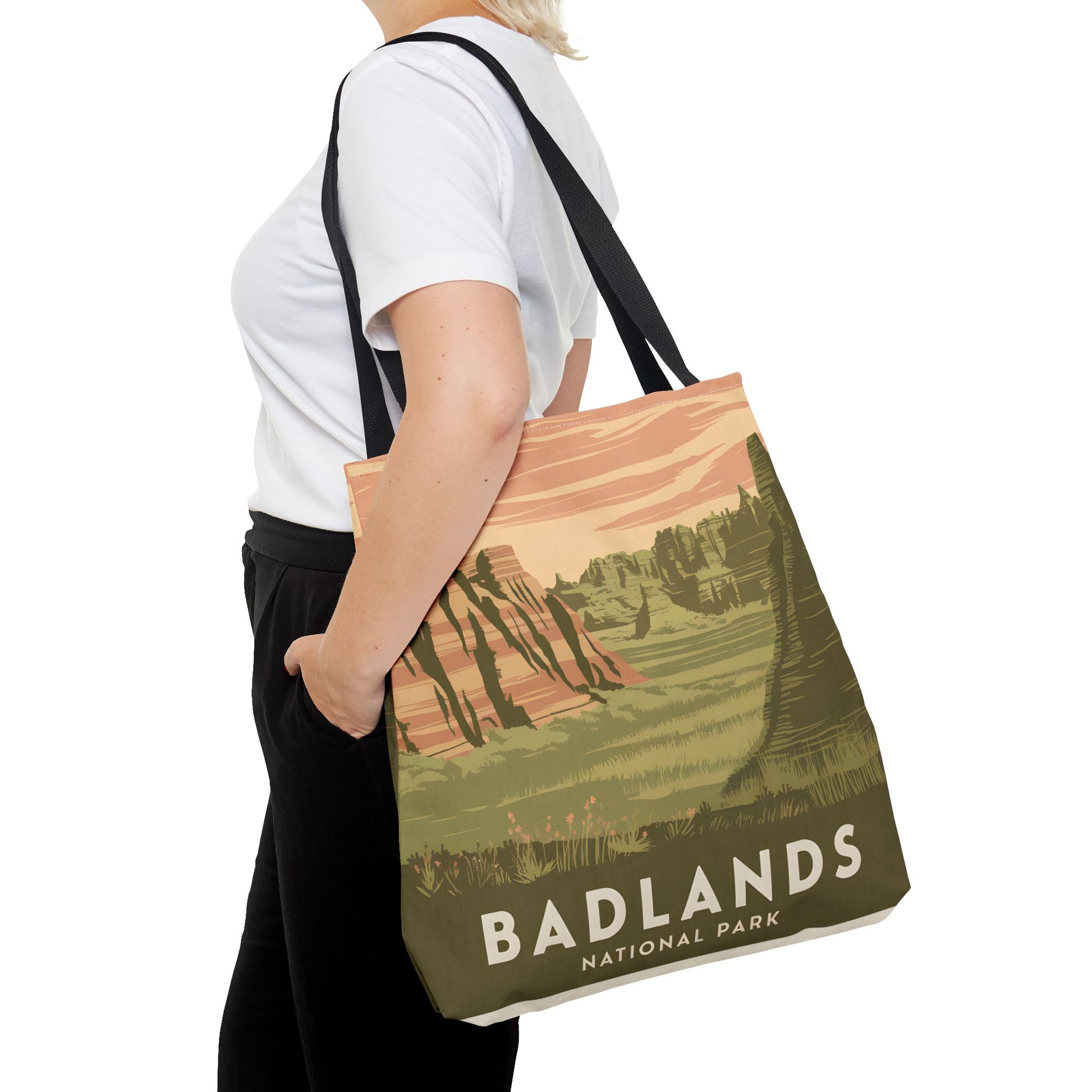 Discover the beauty of Badlands National Park with our All Over Print Tote Bag—your ideal eco-friendly travel companion. Made from sustainable materials, this spacious tote features stunning graphics of rugged landscapes and rich geological formations. Perfect for outings, shopping, or everyday use, it combines style and functionality seamlessly. Carry a piece of nature with you wherever you go!