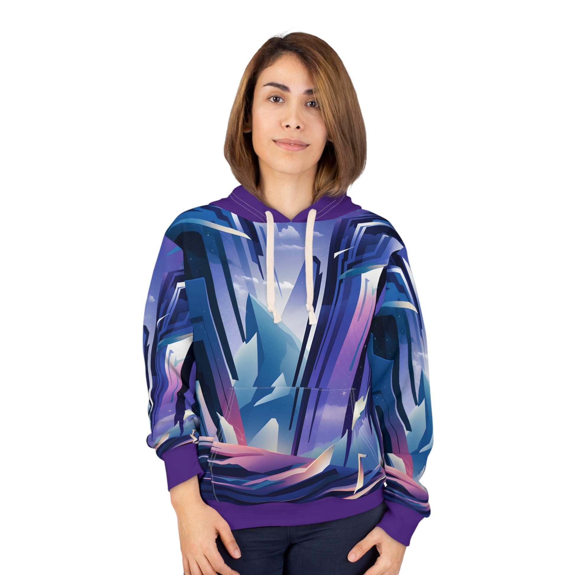 Unleash your inner adventurer with the Celestial Crags All Over Print Hoodie! This unisex pullover combines comfort and style for those who crave the great outdoors. Made from soft, durable fabric, it features a stunning celestial design that inspires exploration. Perfect for hiking, camping, or simply stargazing!