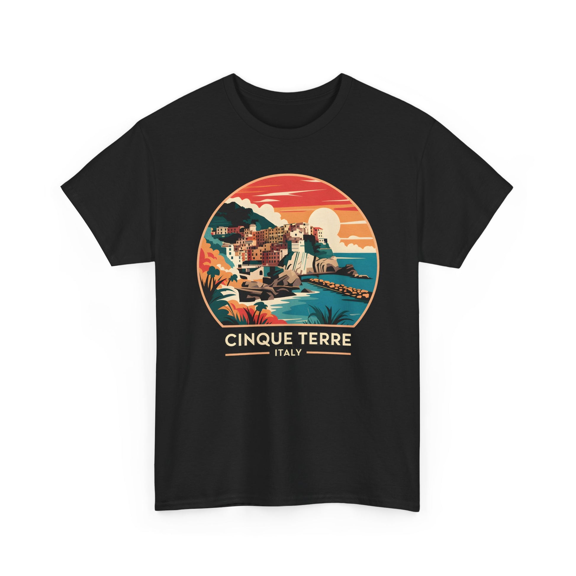 Cinque Terre Graphic Style Coastal Sunset T-Shirt Italy Village Design