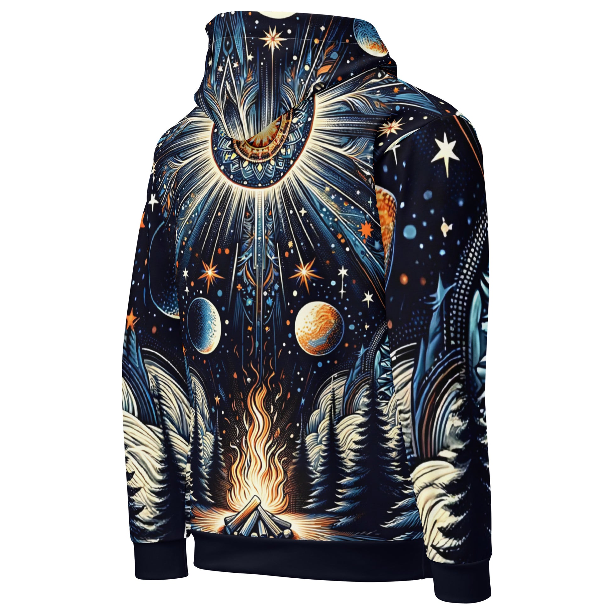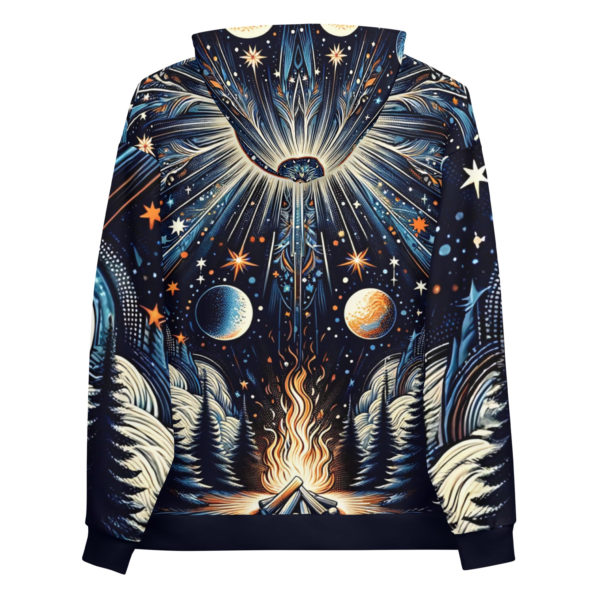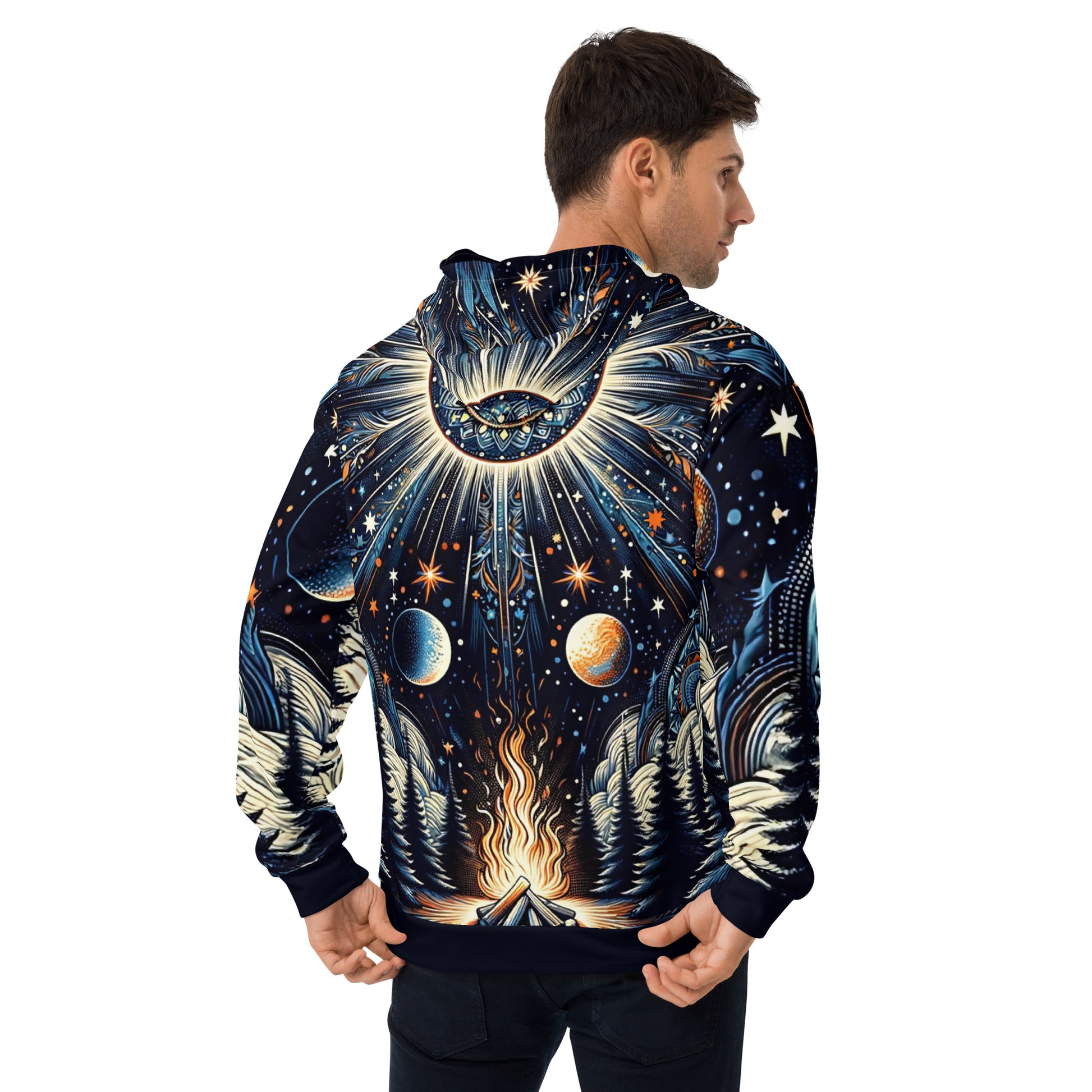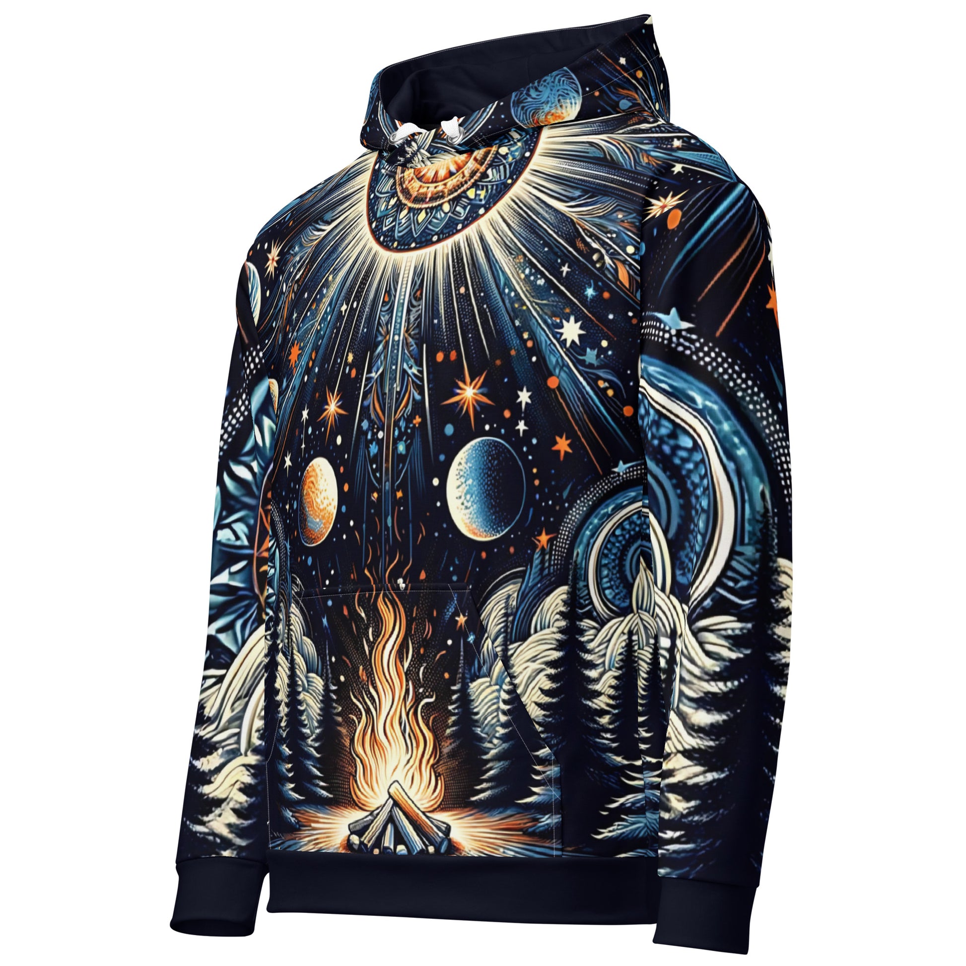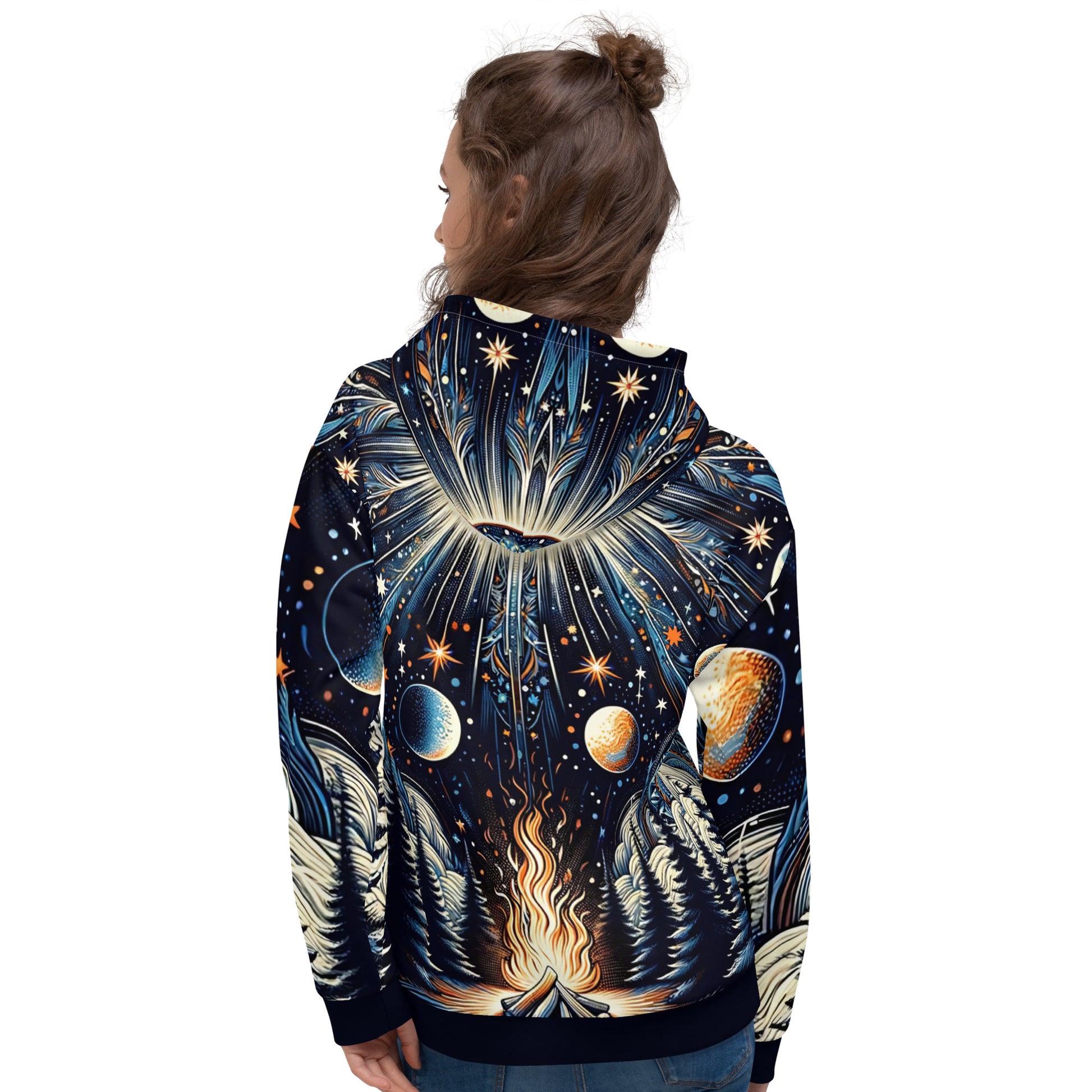 Cosmic Campfire Magic Hoodie – Adult Unisex Artistic All-Over Print Sweatshirt, Artistic Graphic Outerwear