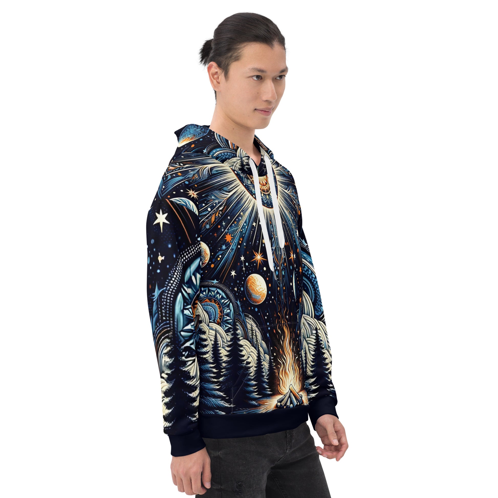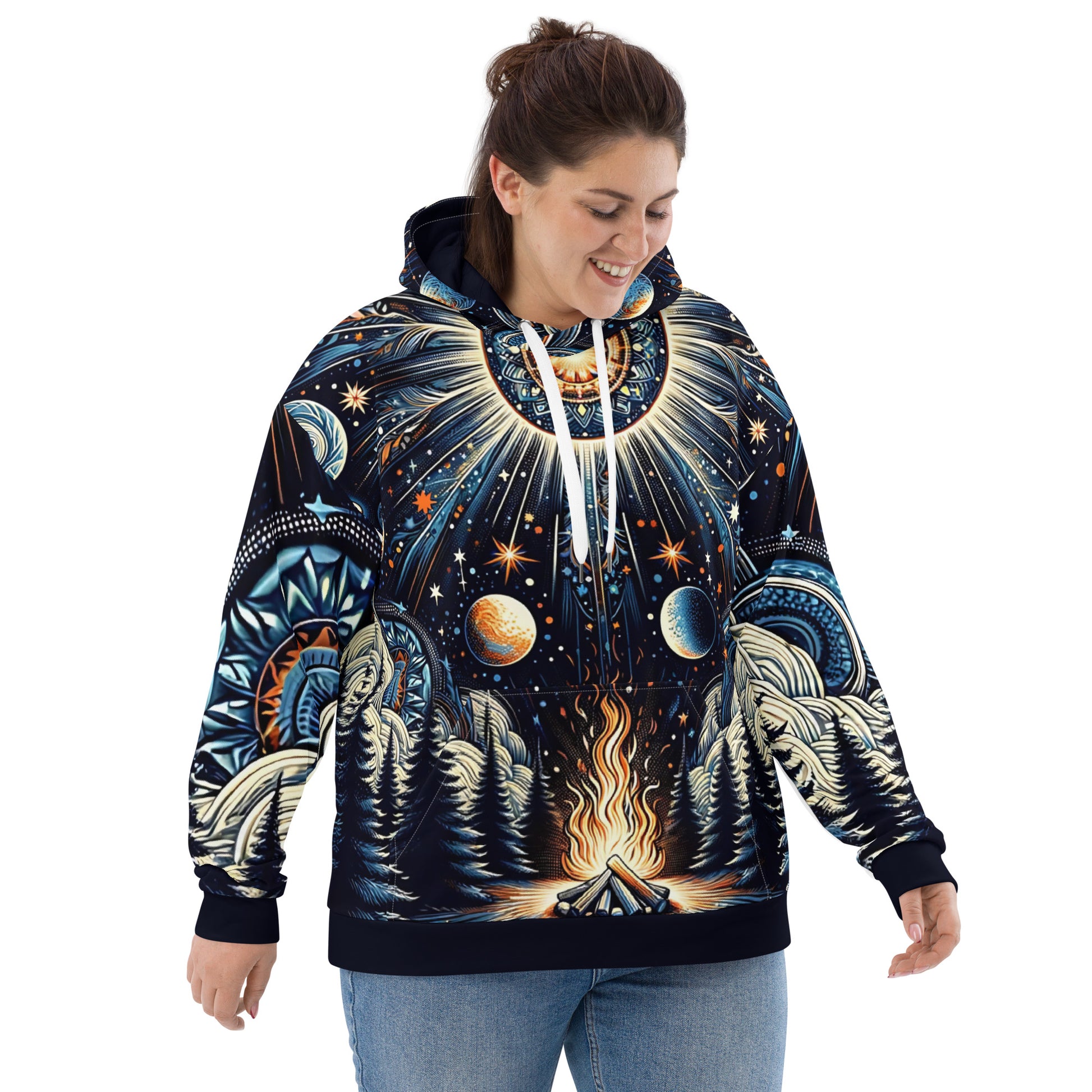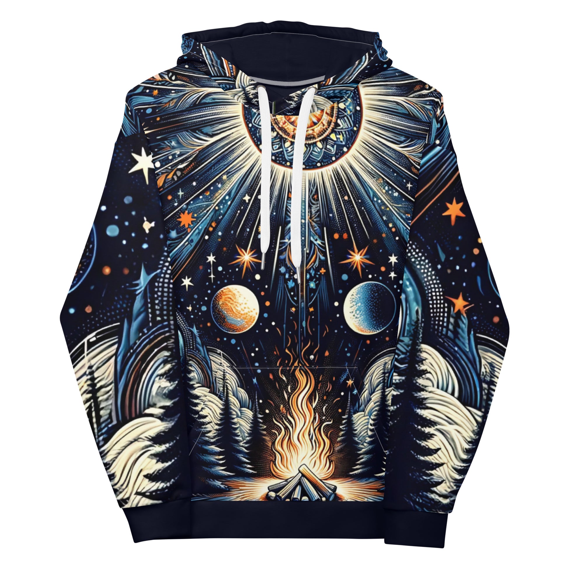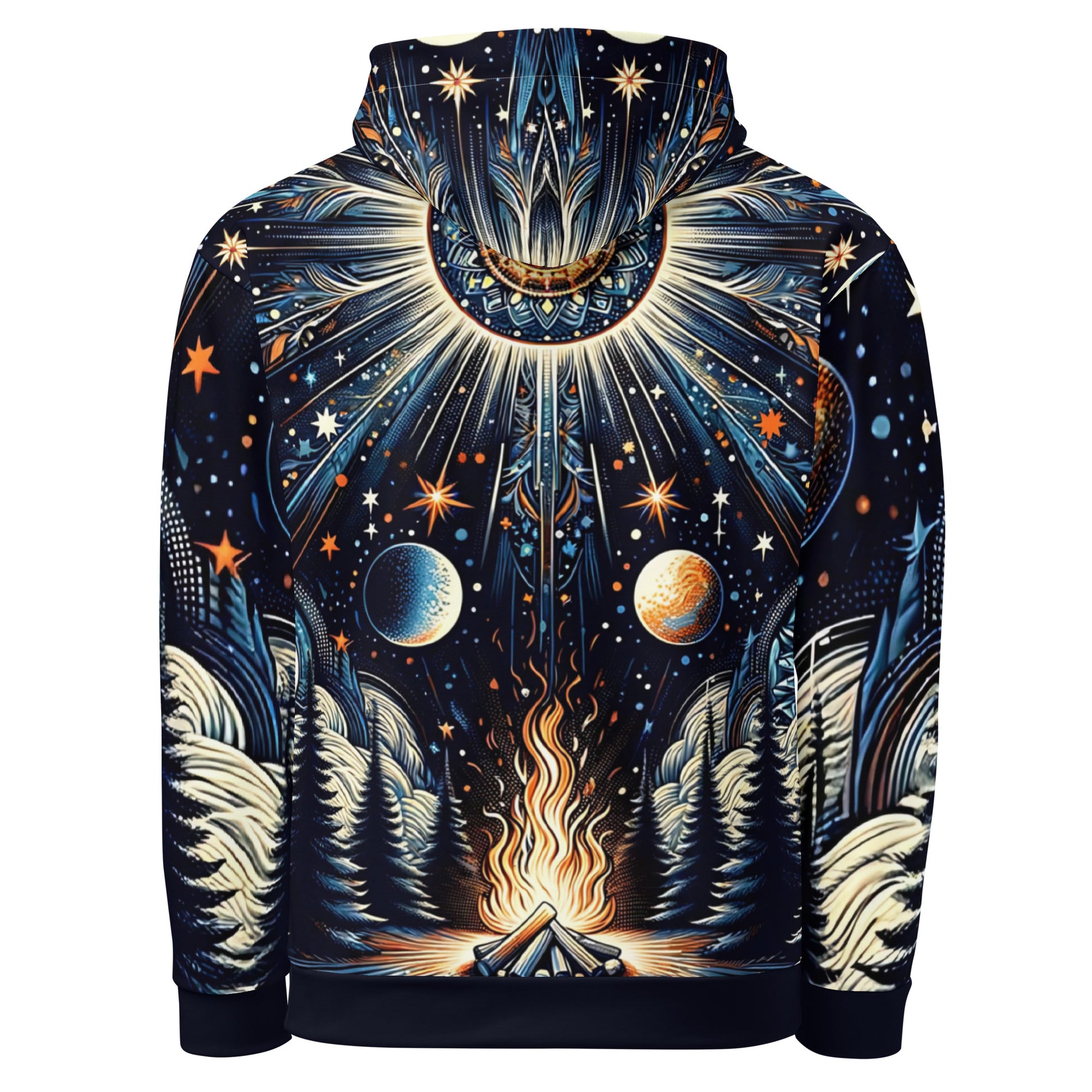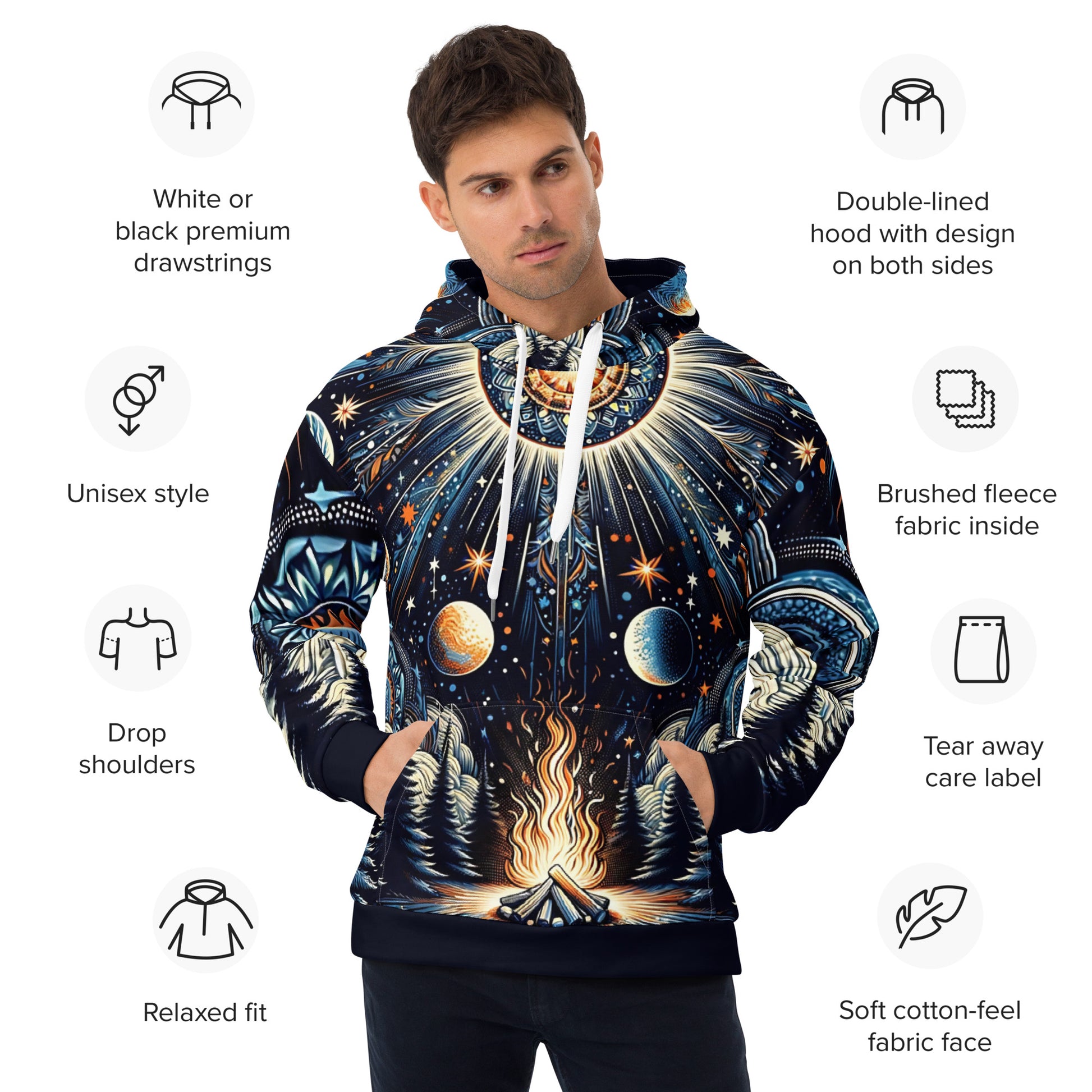 Cosmic Campfire Magic Hoodie – Adult Unisex Artistic All-Over Print Sweatshirt, Artistic Graphic Outerwear