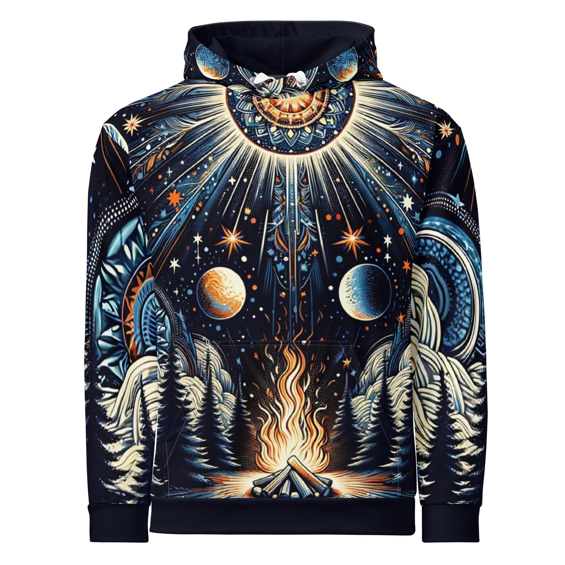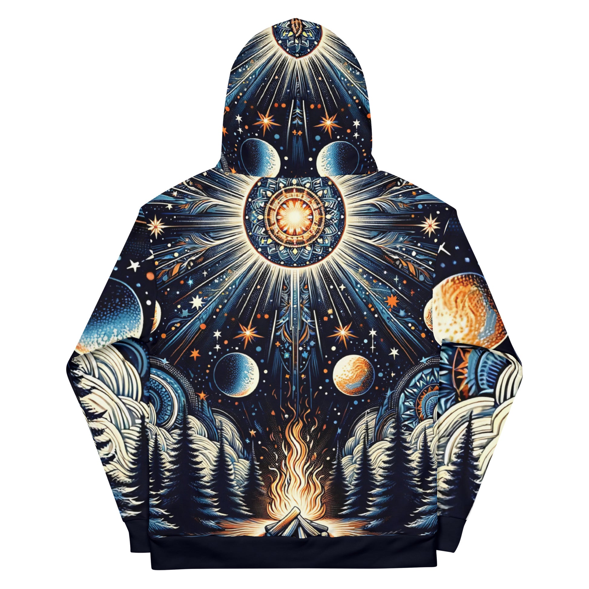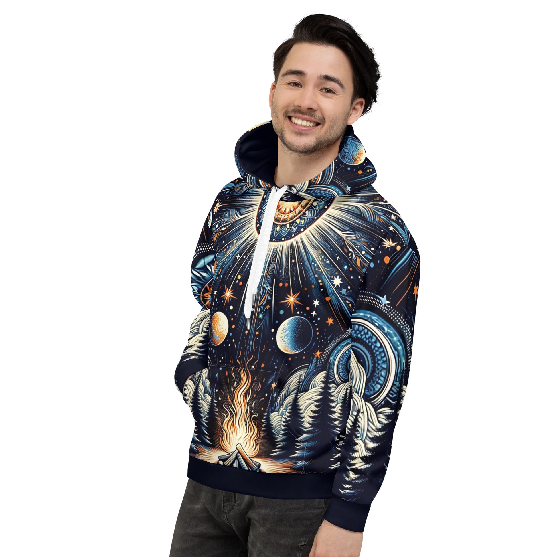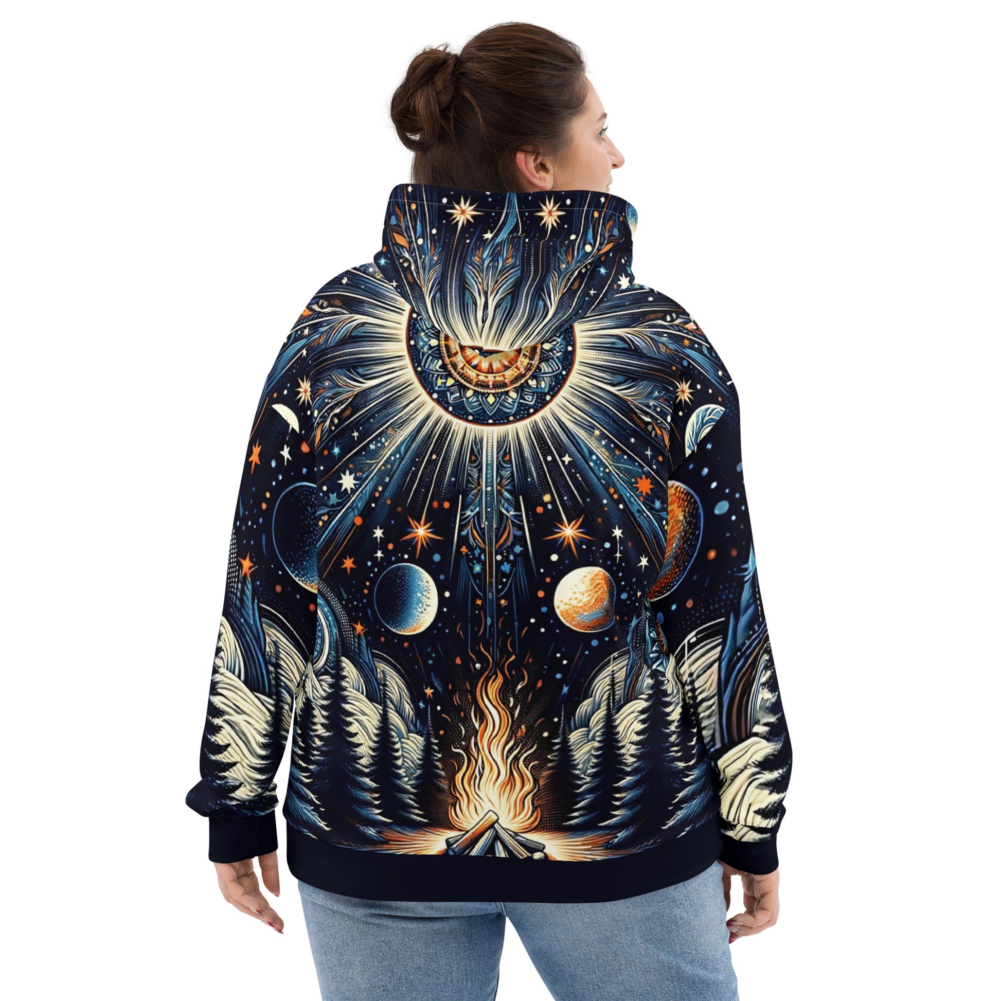 Cosmic Campfire Magic Hoodie – Adult Unisex Artistic All-Over Print Sweatshirt, Artistic Graphic Outerwear