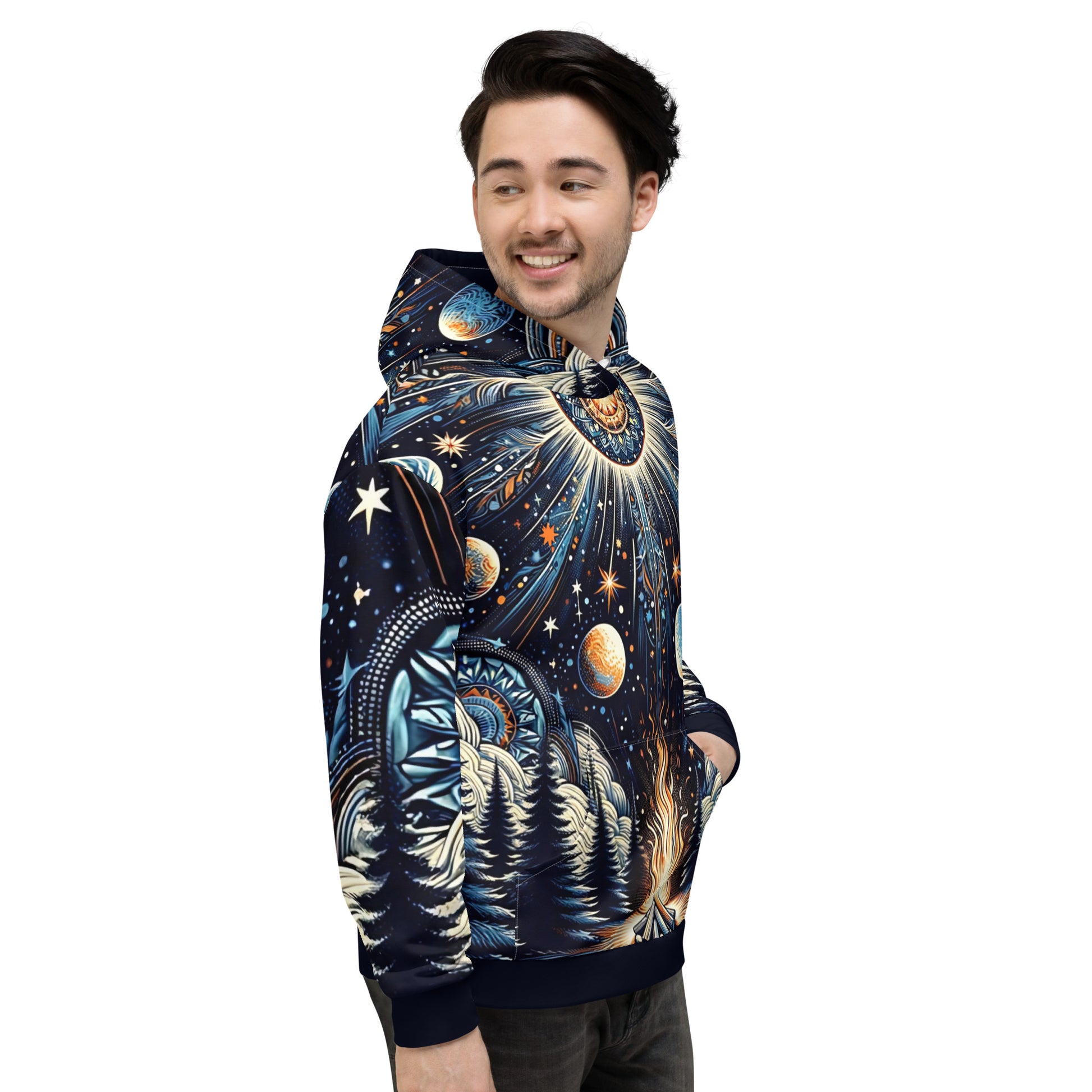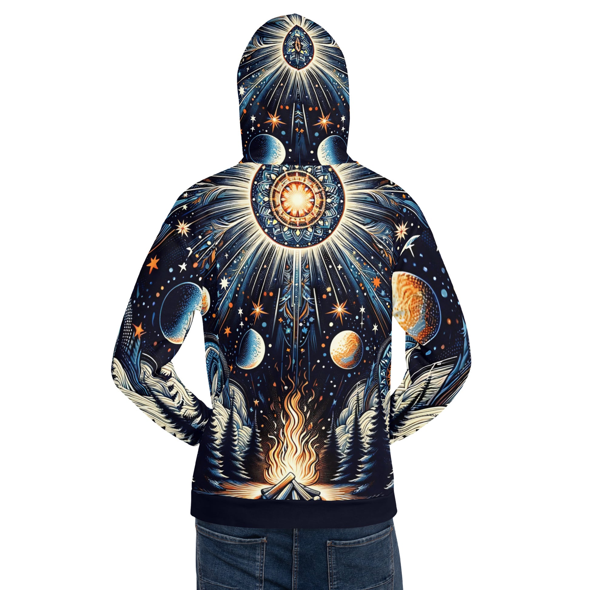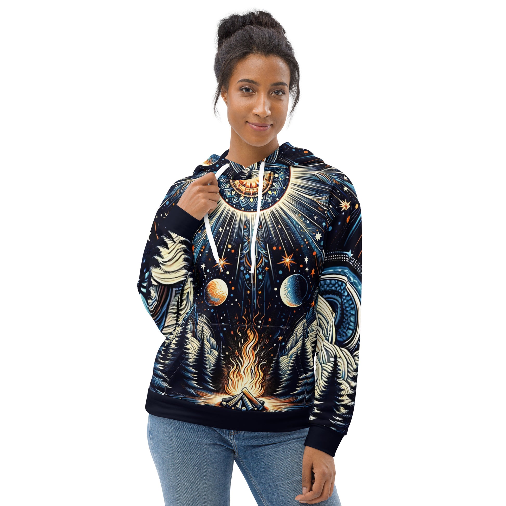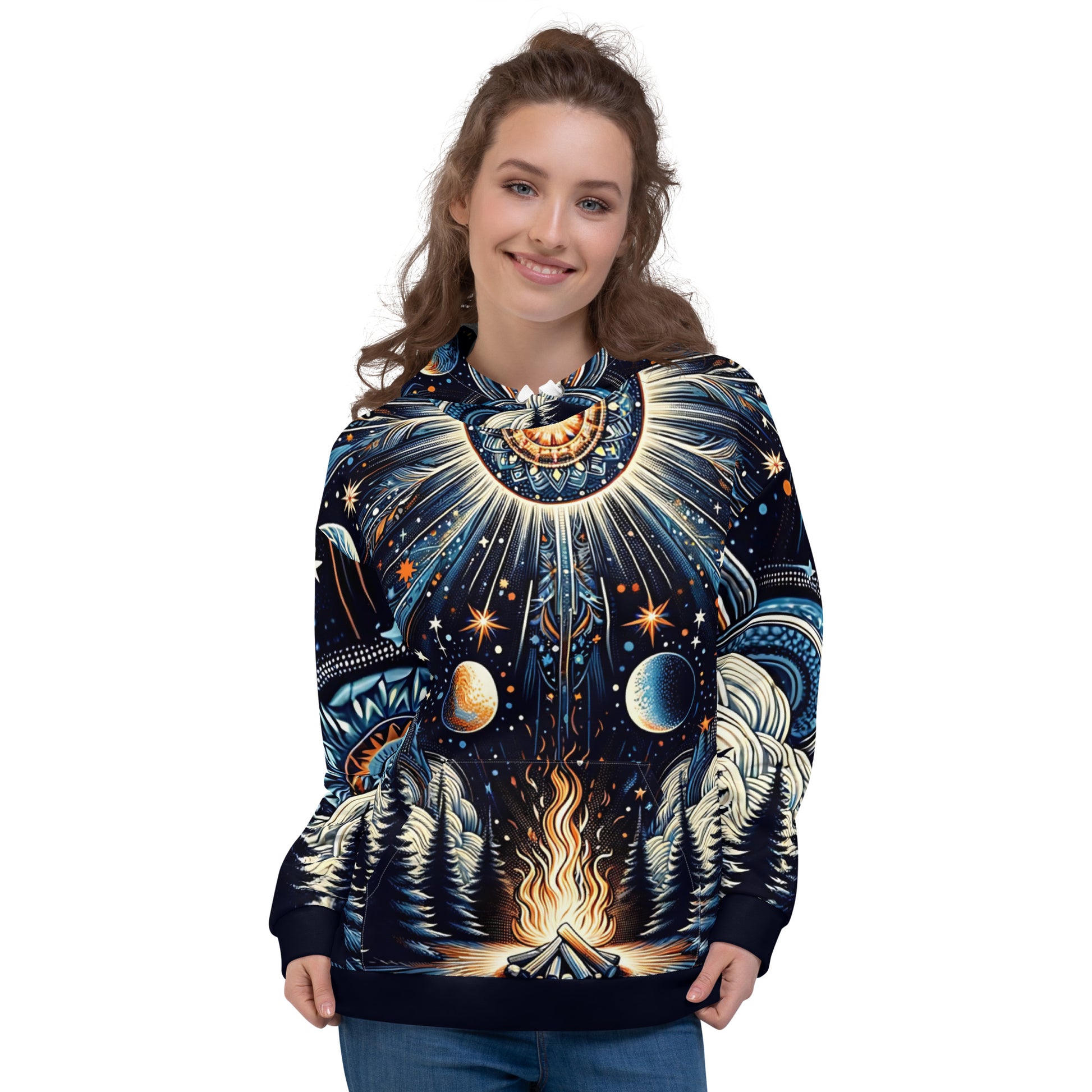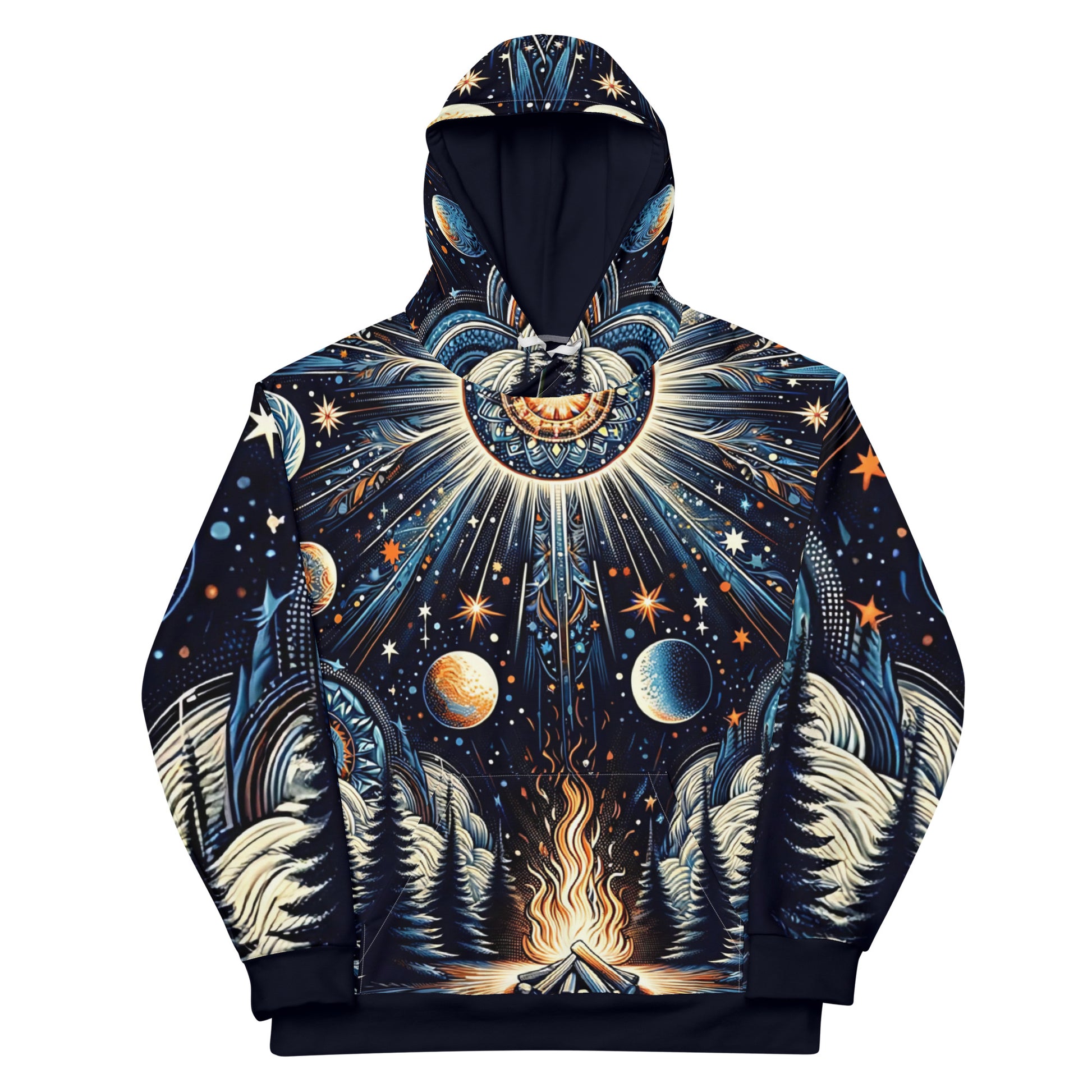 Cosmic Campfire Magic Hoodie – Adult Unisex Artistic All-Over Print Sweatshirt, Artistic Graphic Outerwear