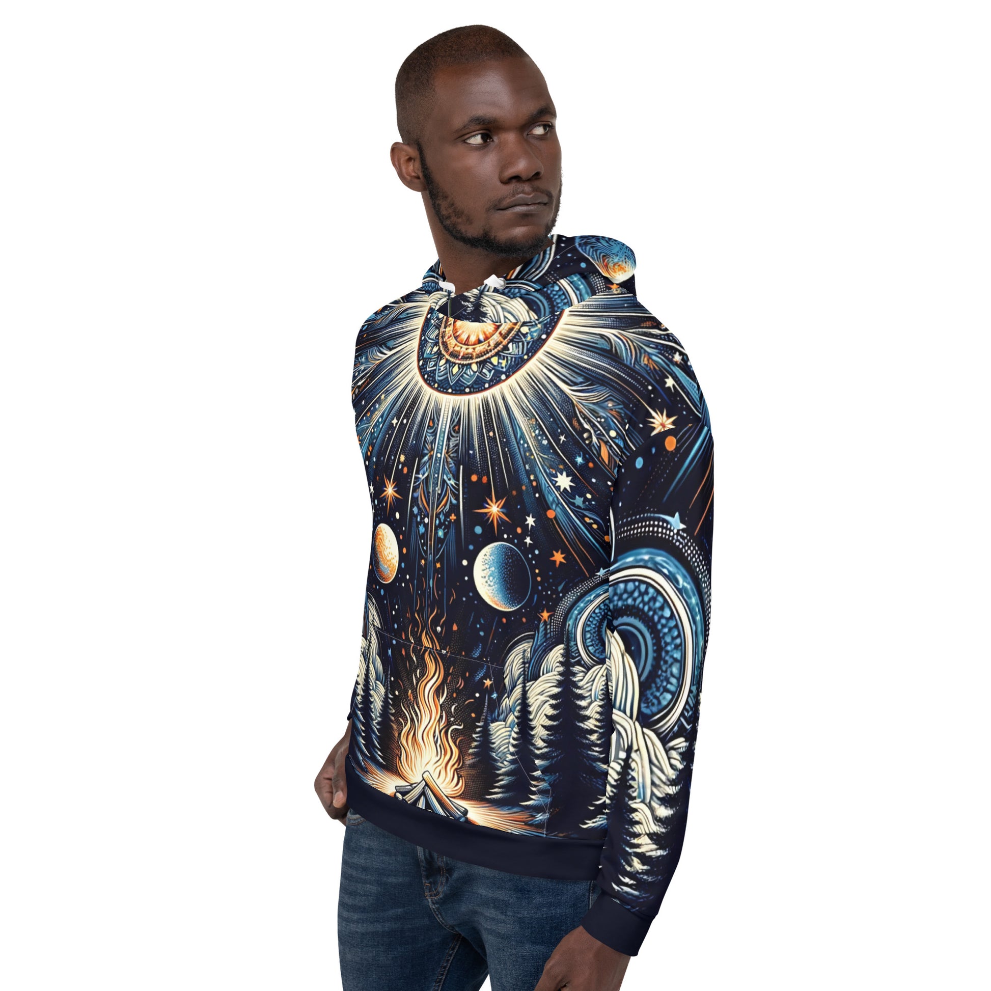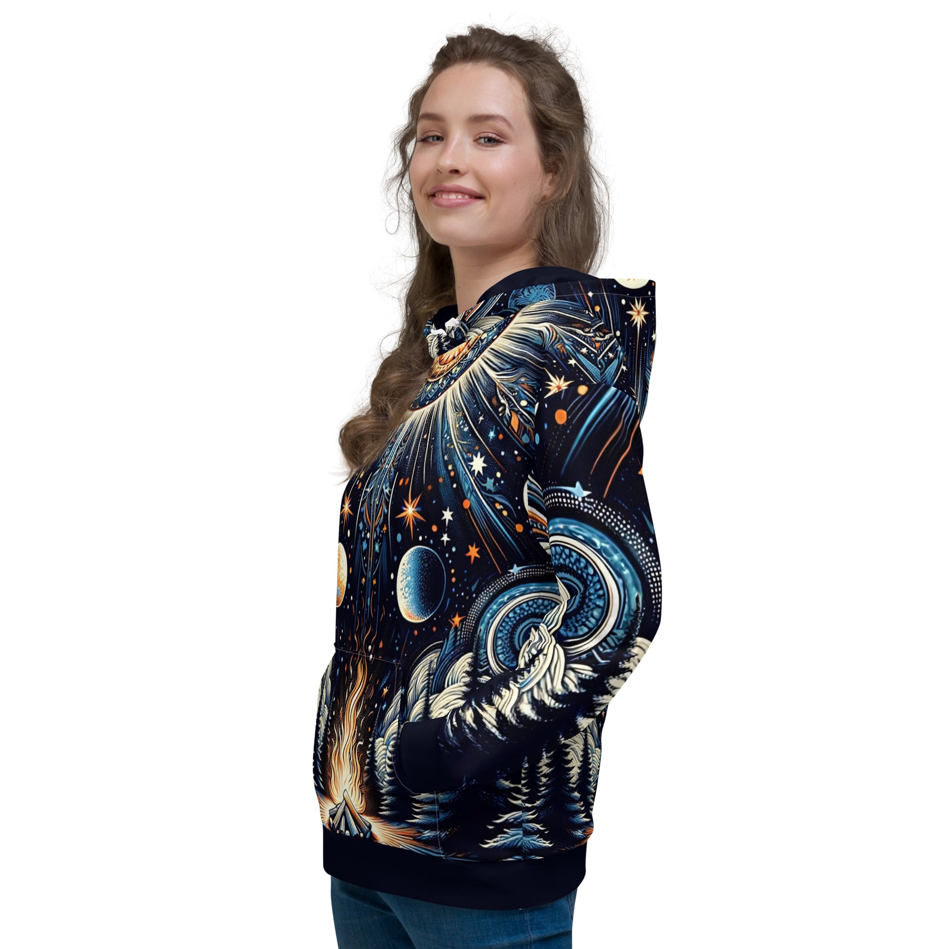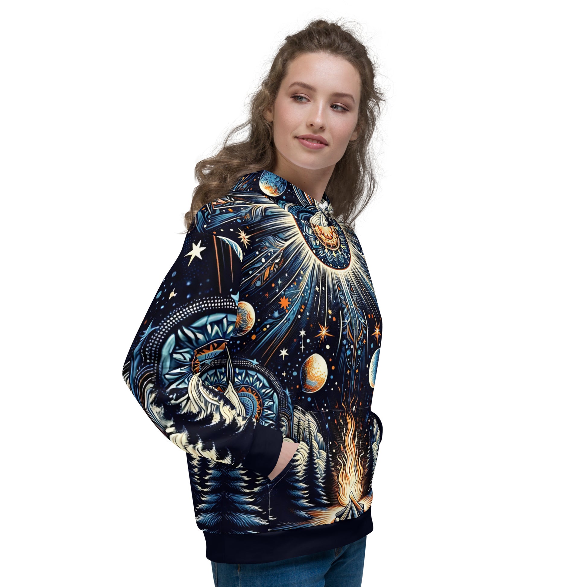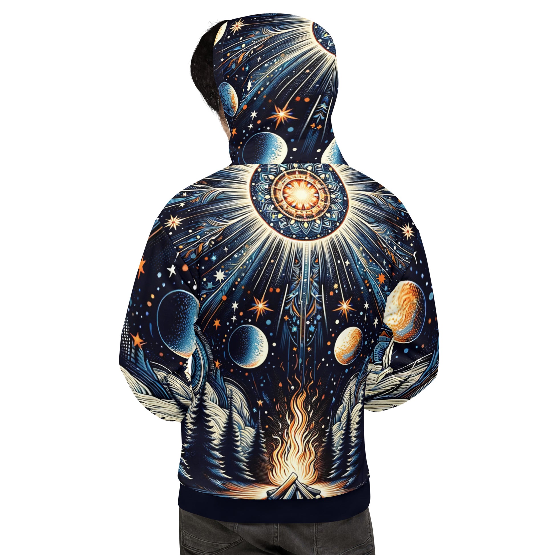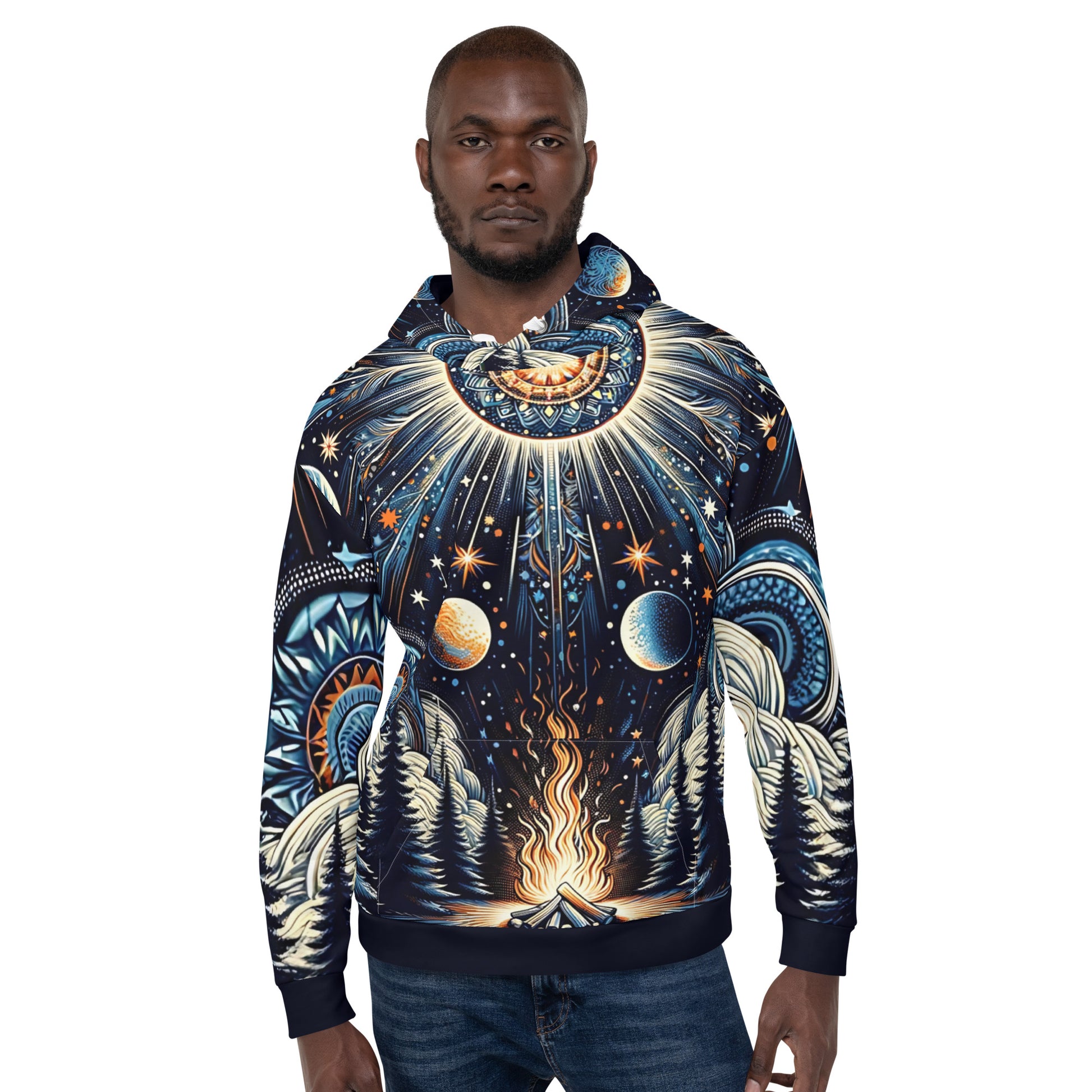 Cosmic Campfire Magic Hoodie – Adult Unisex Artistic All-Over Print Sweatshirt, Artistic Graphic Outerwear