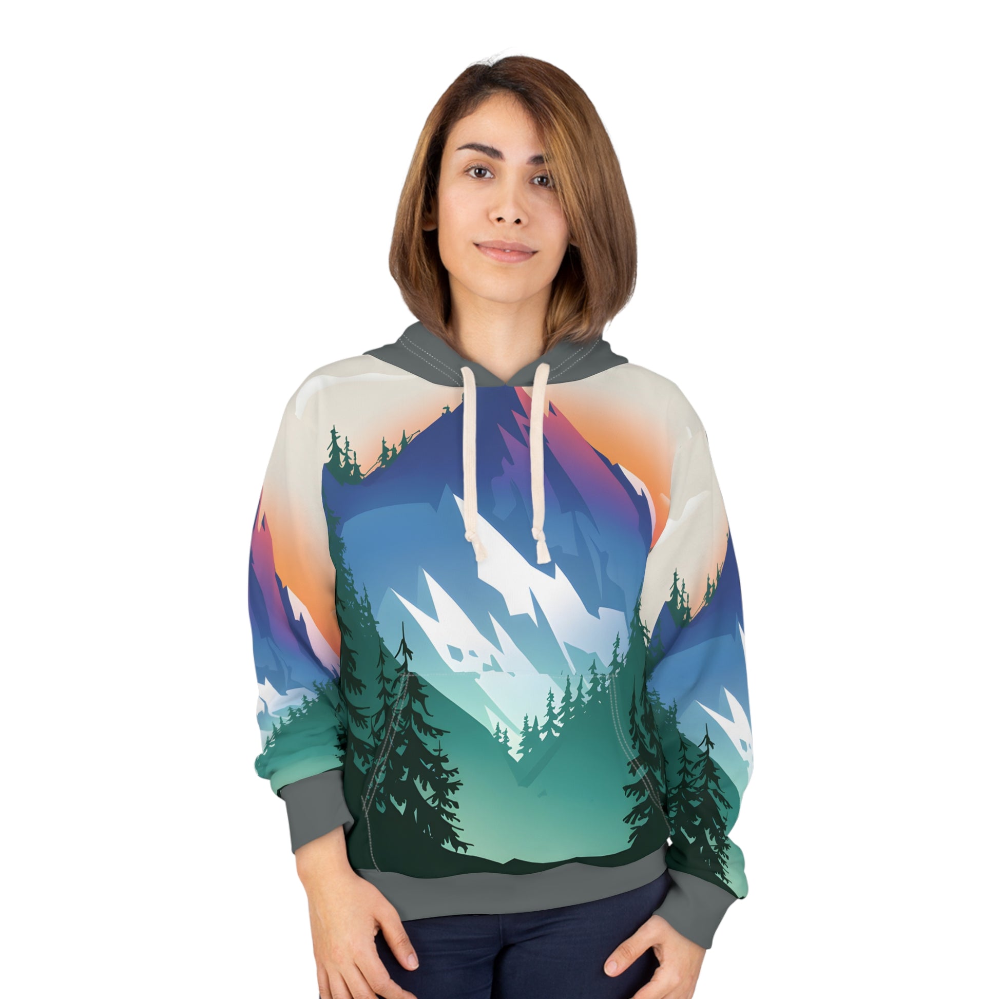 Elevate your outdoor adventures with the Drifting Summit All Over Print Hoodie. This cozy, unisex pullover combines style and functionality, featuring a vibrant, nature-inspired print that celebrates your love for exploration. Made with soft fabric and a comfortable fit, it's perfect for chilly hikes and bonfire nights. Embrace the wild!