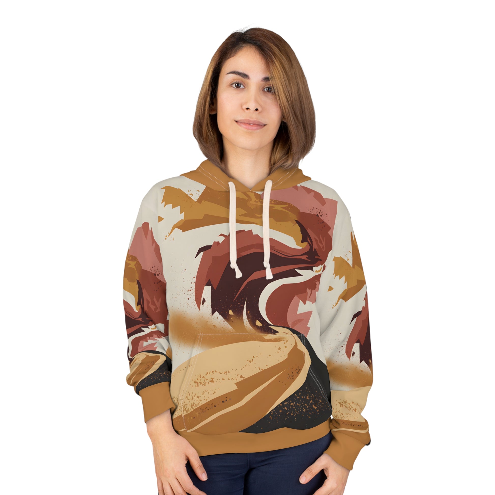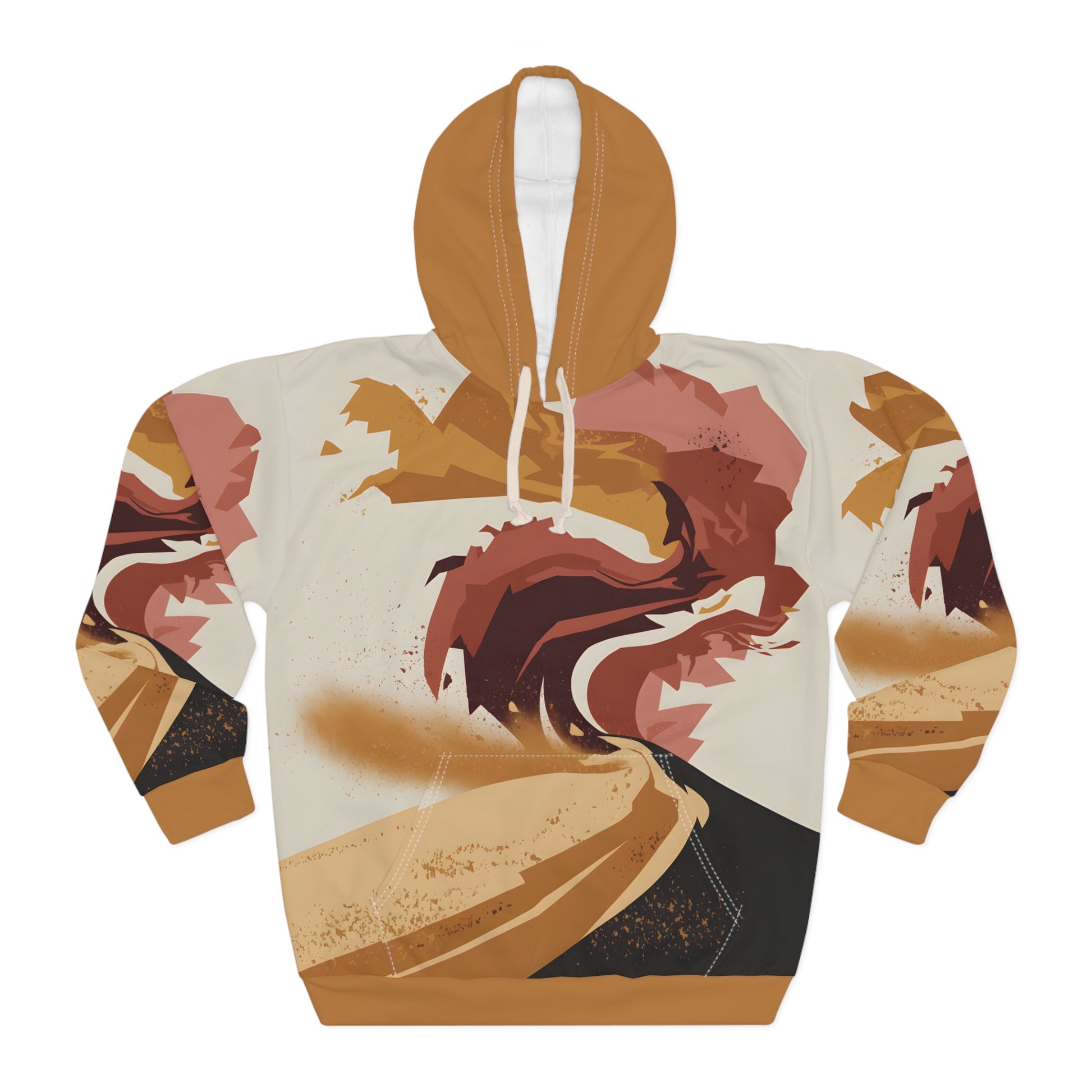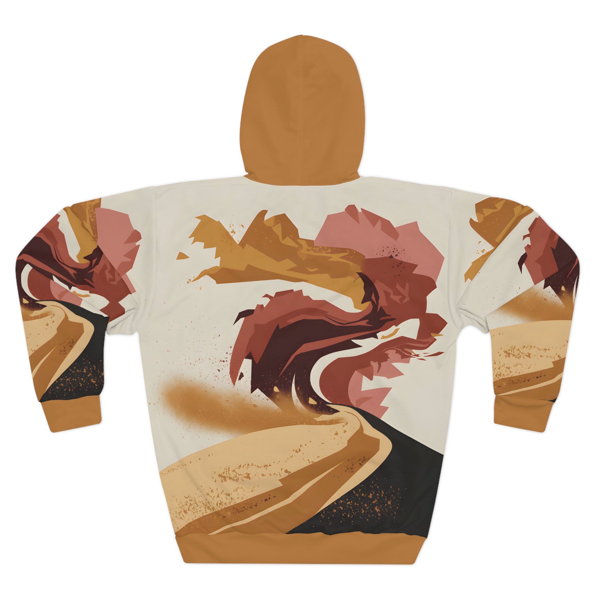 Embrace the elements with our Dust Storm Drift Hoodie. This all-over print pullover blends unique design with ultimate comfort, perfect for outdoor adventures or casual outings. Crafted for all, it offers warmth and style in one. Stand out in nature or the city—your journey awaits in this must-have hoodie!