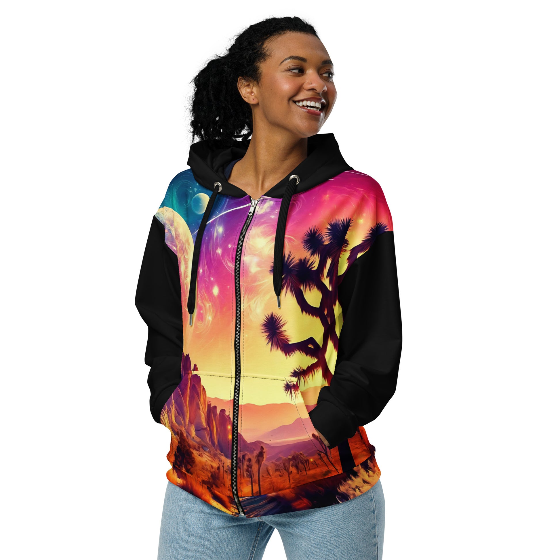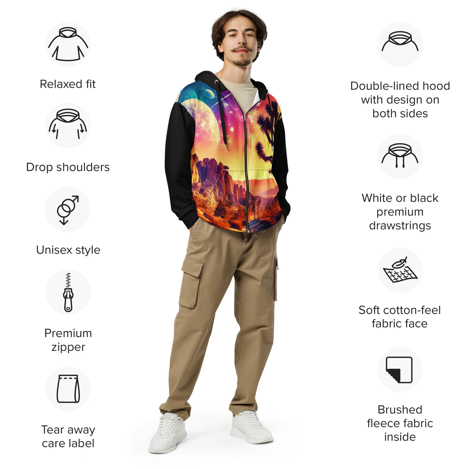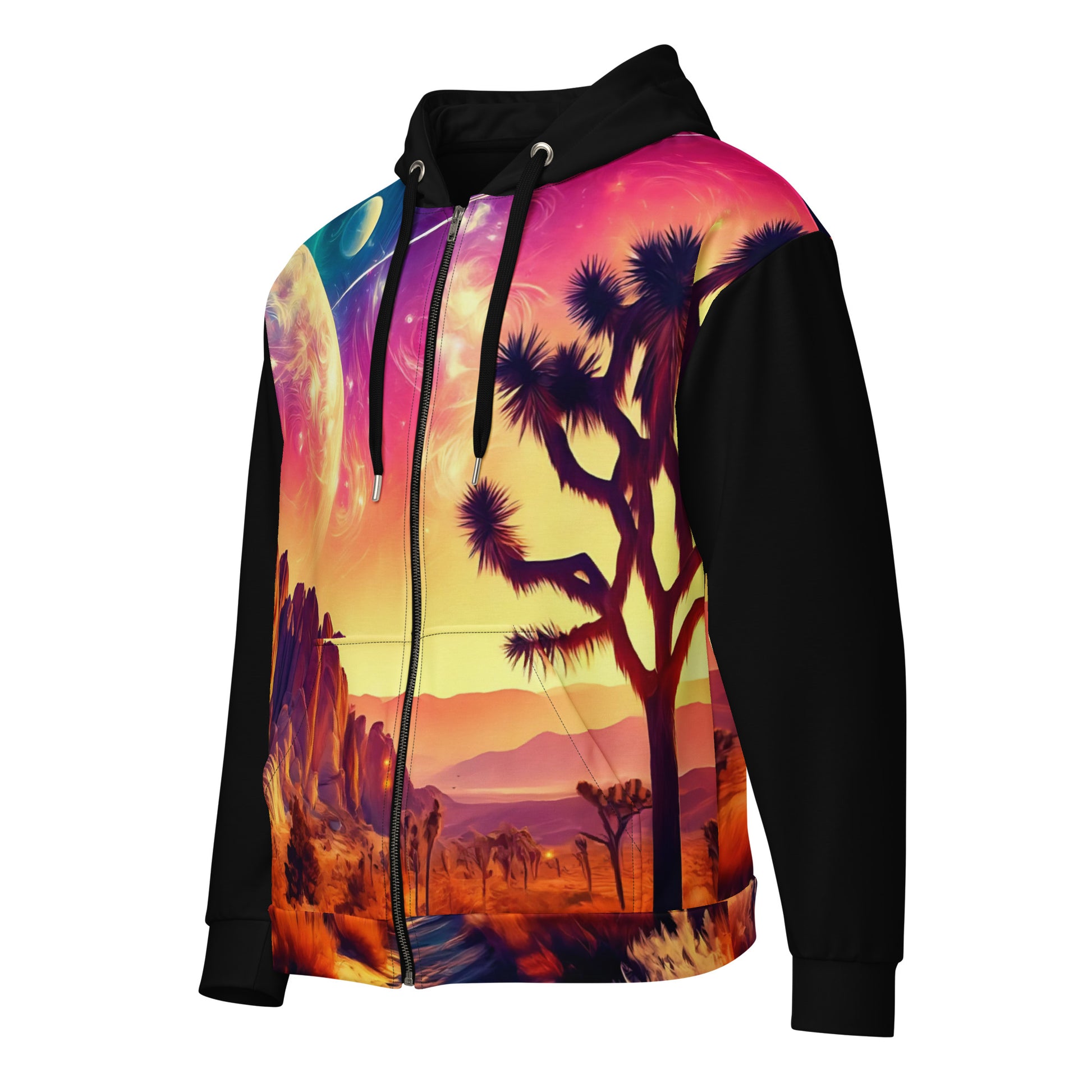 Joshua Tree All-Over Print Hoodie Mens, Vibrant Sunset Art Print Full Zip Jacket