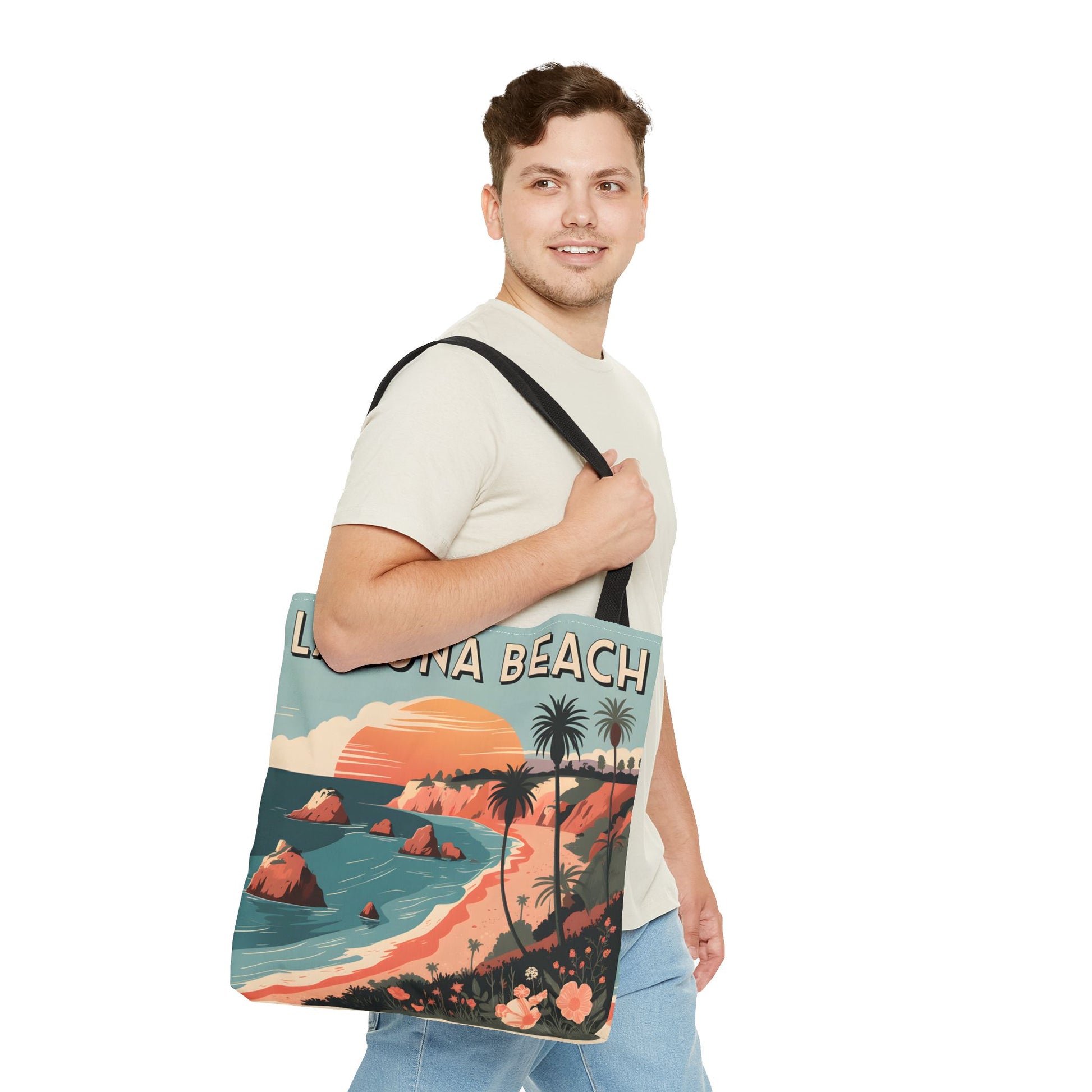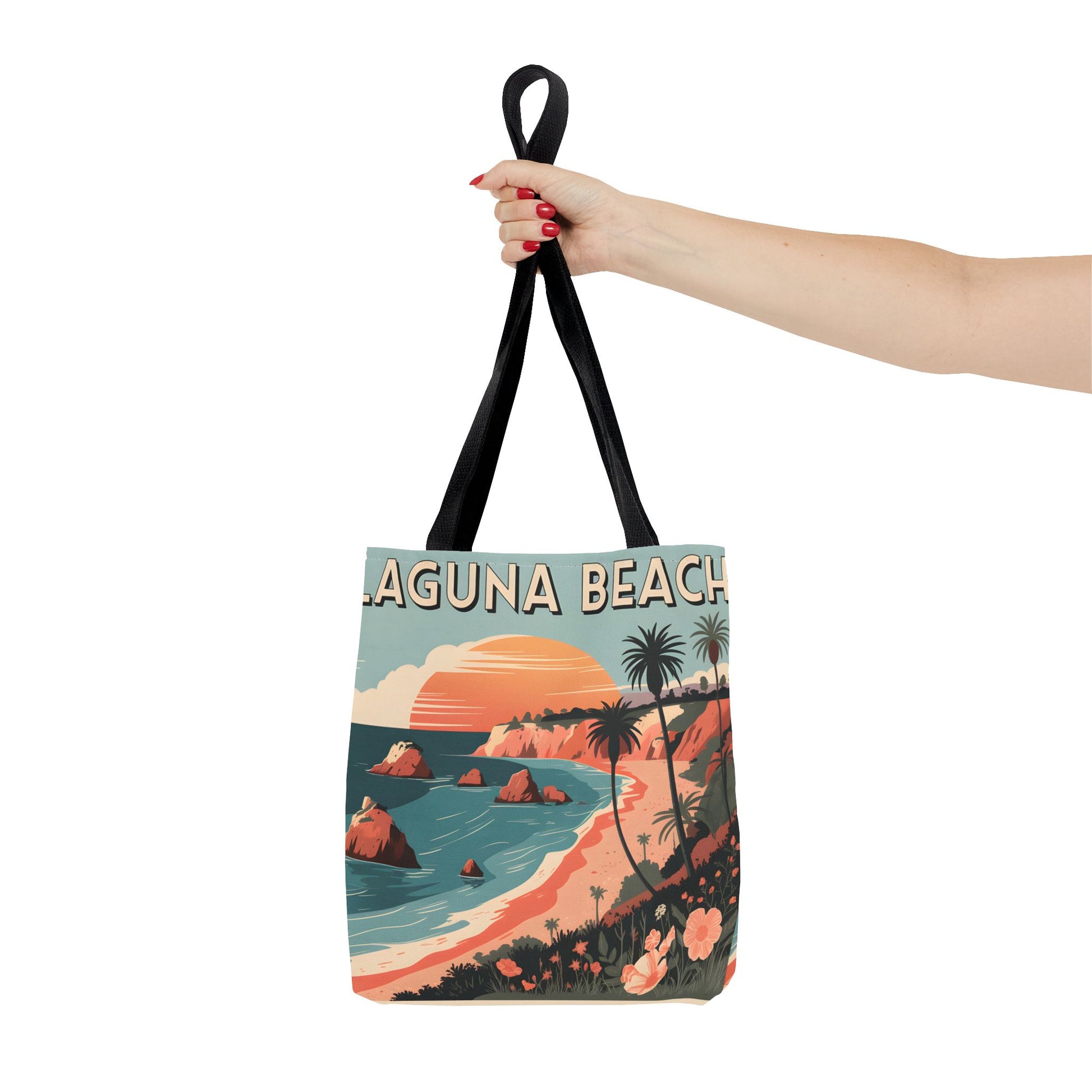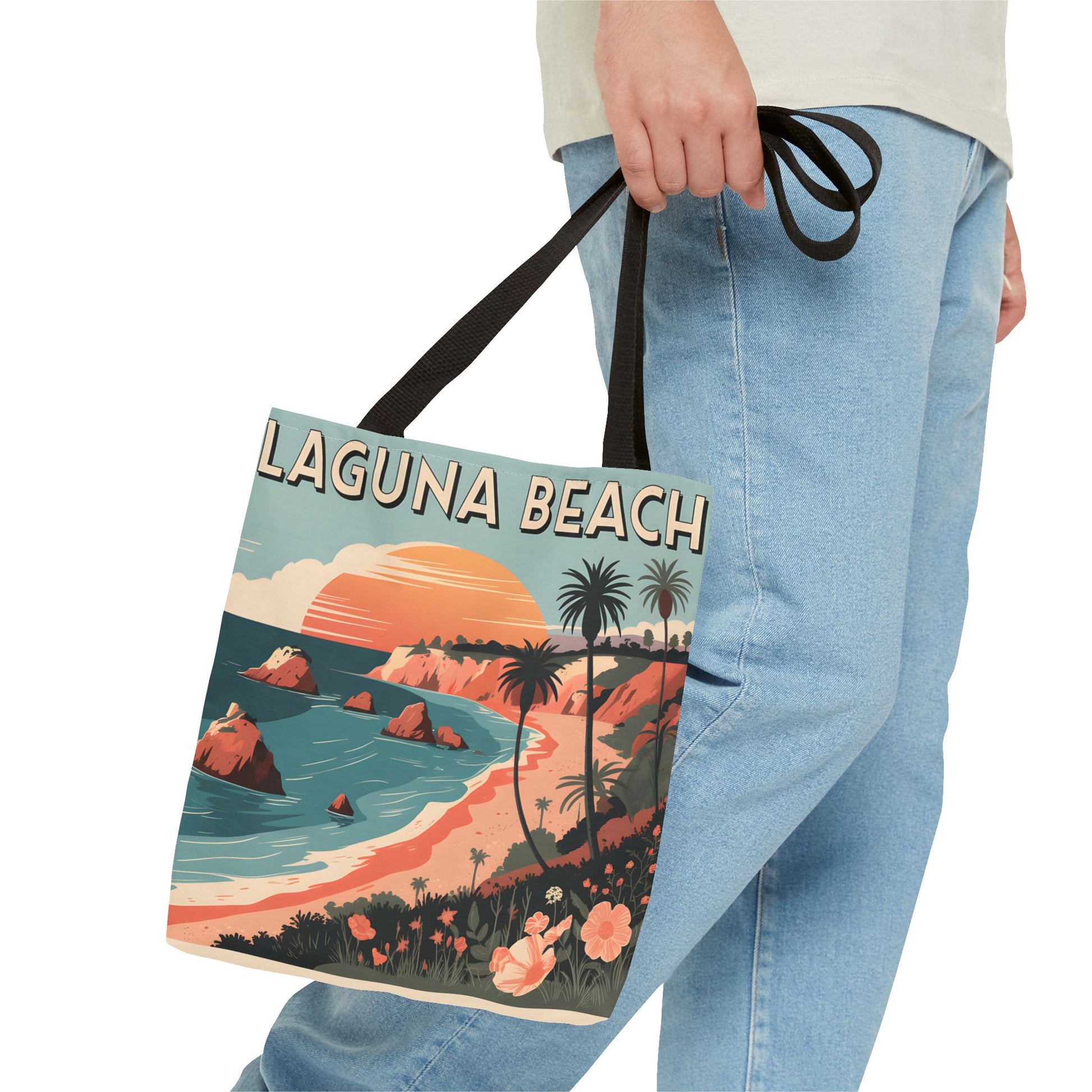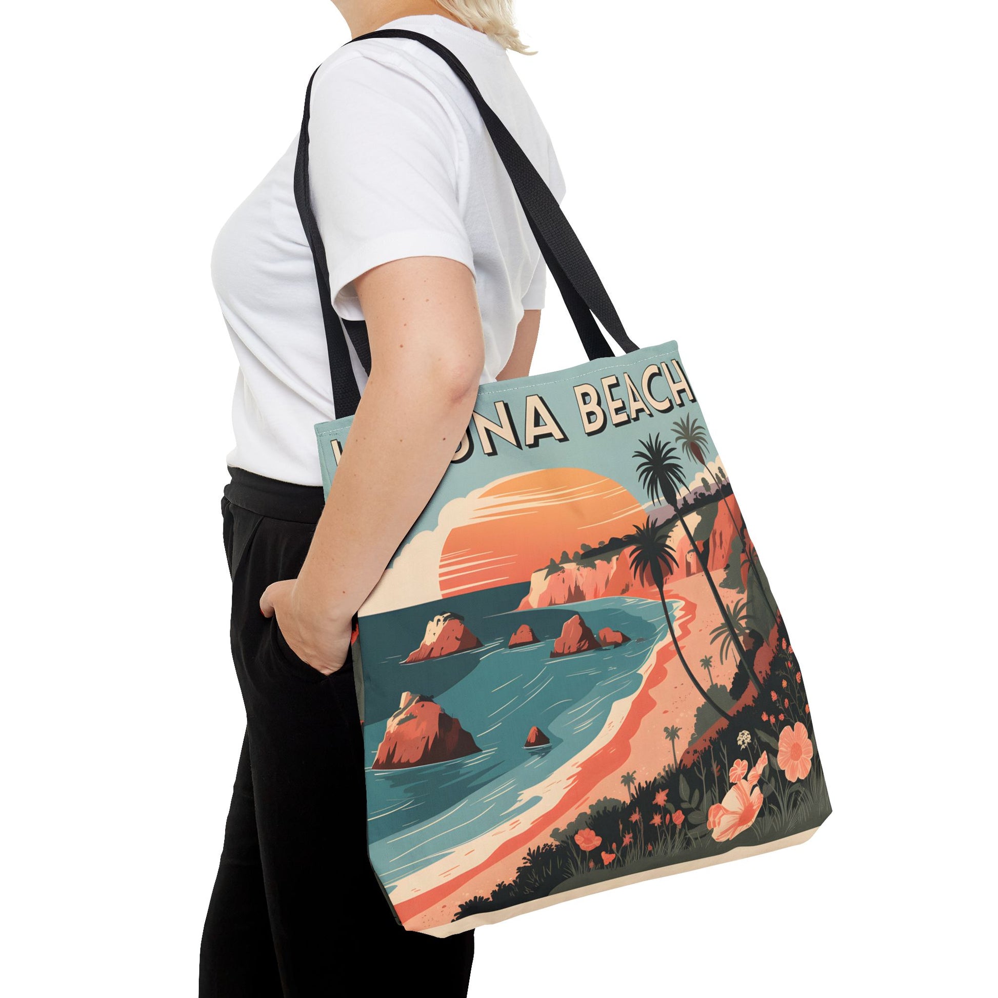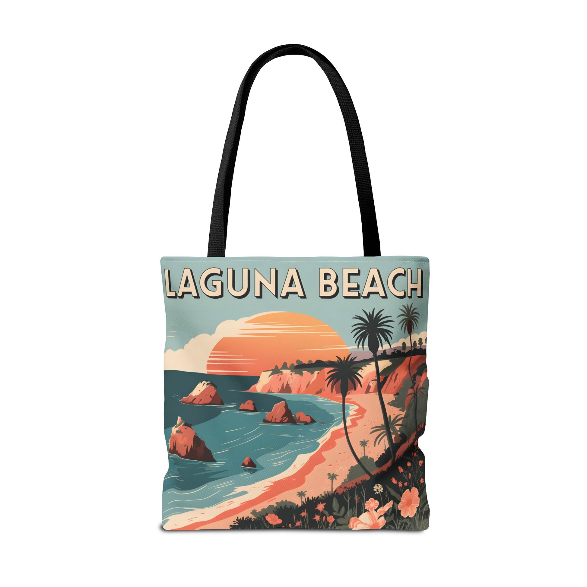 Laguna Beach Tote Bag Coastal Design All Over Print Artistic Beach Accessory