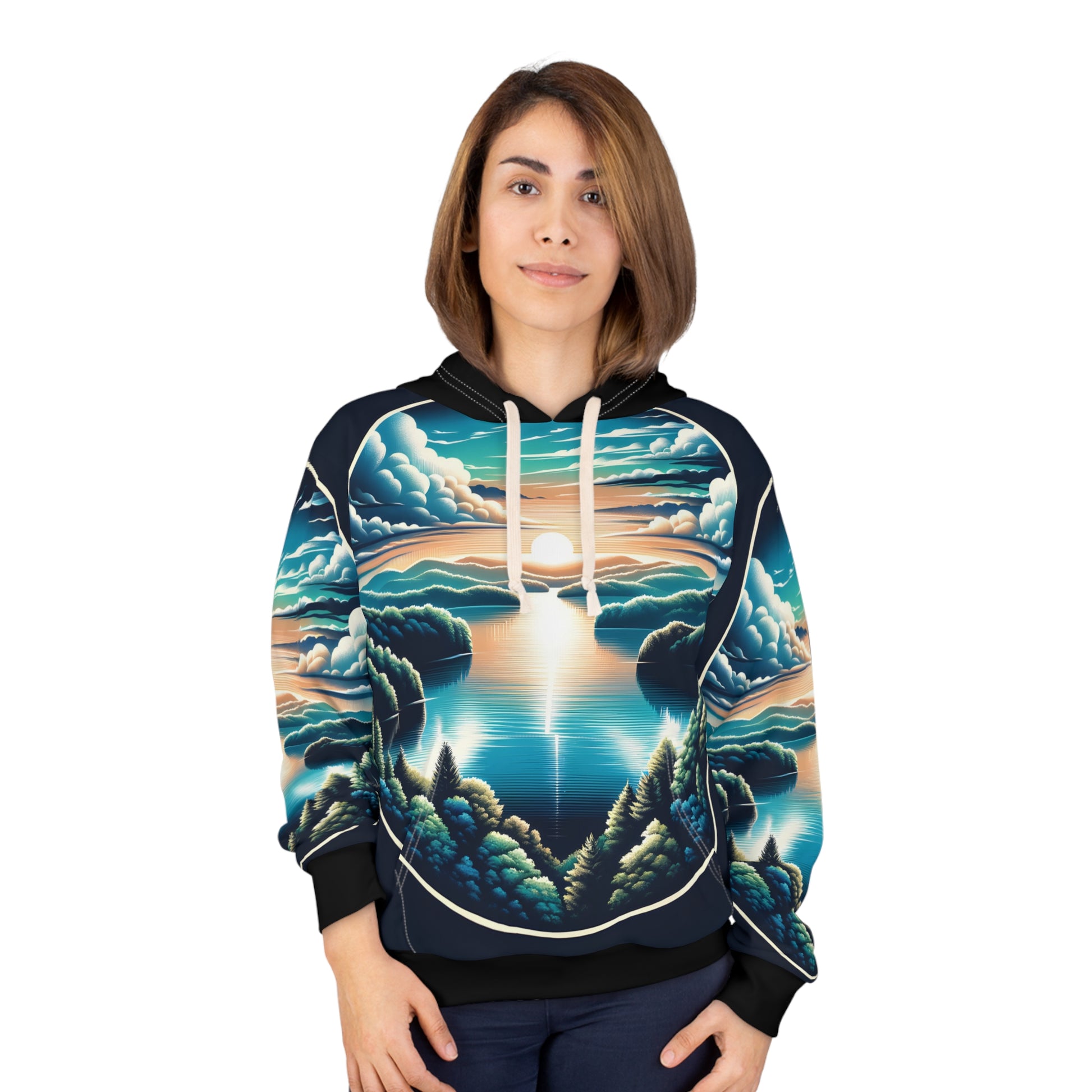 Embrace adventure with our All Over Print Lake Cumberland Hoodie, perfect for outdoor enthusiasts. Crafted from soft, durable fabric, this unisex pullover offers warmth and style. Ideal for travel, hiking, or cozy nights by the fire, it makes a thoughtful gift for nature lovers. Elevate your wardrobe with this unique piece!