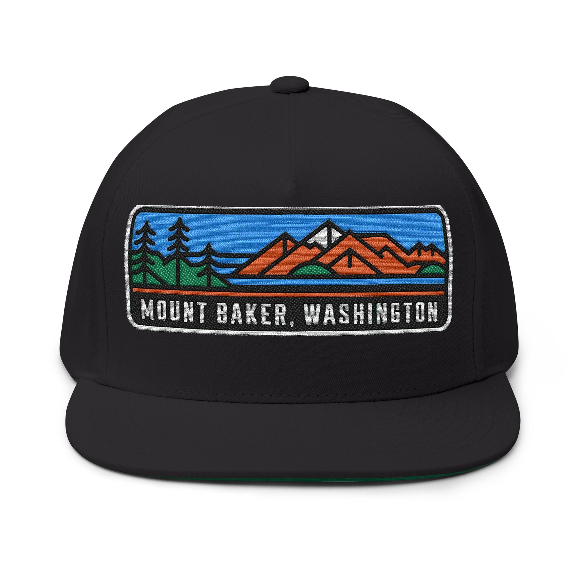 Mount Baker Washington Flat Bill Hat Outdoor Adventure Gear Adjustable Cap