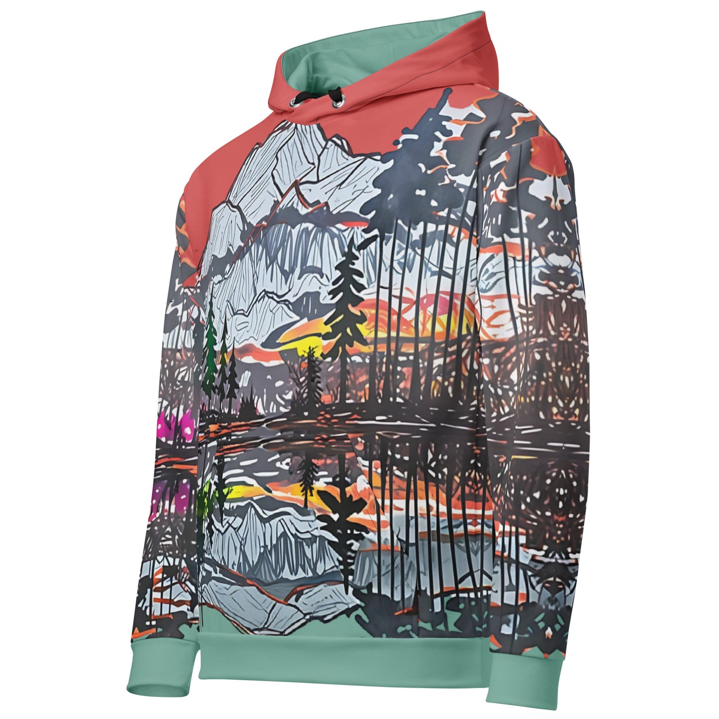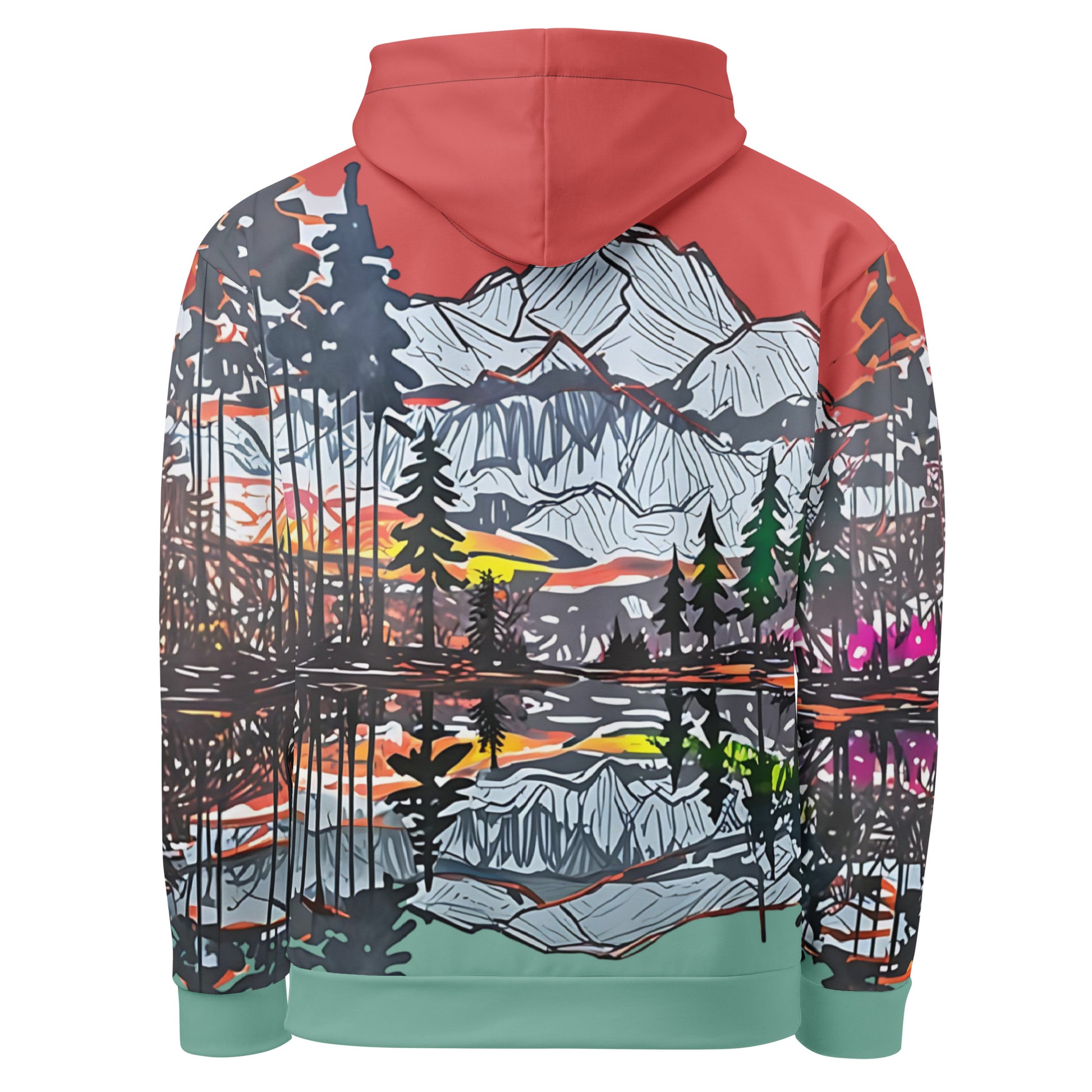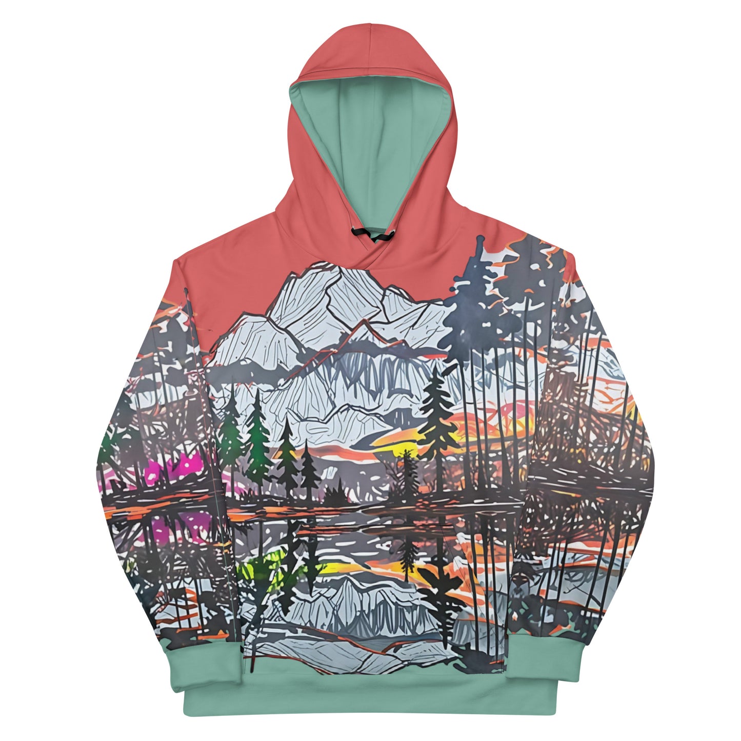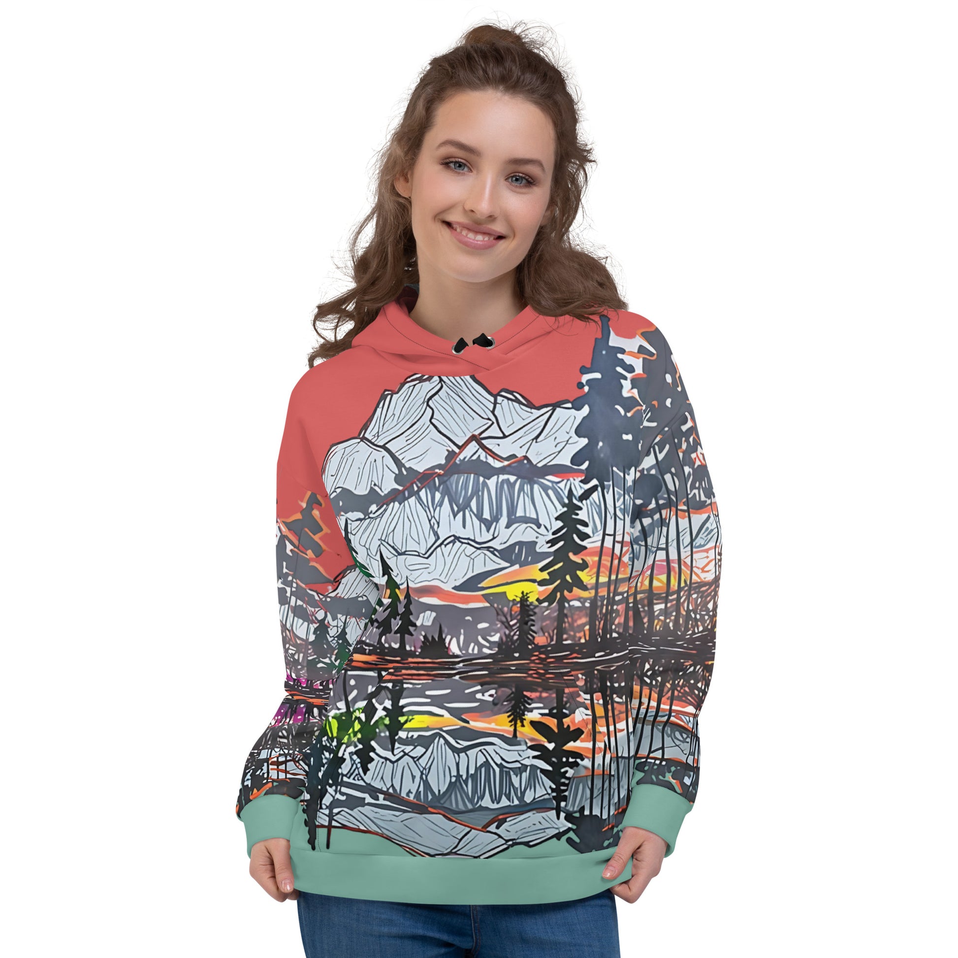 Capture the beauty of nature with this stunning all-over print hoodie! Featuring an artistic mountain landscape design with a vibrant sunset, this hoodie is perfect for outdoor enthusiasts, art lovers, or anyone looking to elevate their casual wardrobe. Made from a soft, lightweight fabric, it ensures maximum comfort and durability. The unisex fit and bold colors make it a versatile piece for both men and women. Perfect for cozy nights, hikes, or everyday wear, this hoodie combines style and functionality seamlessly.