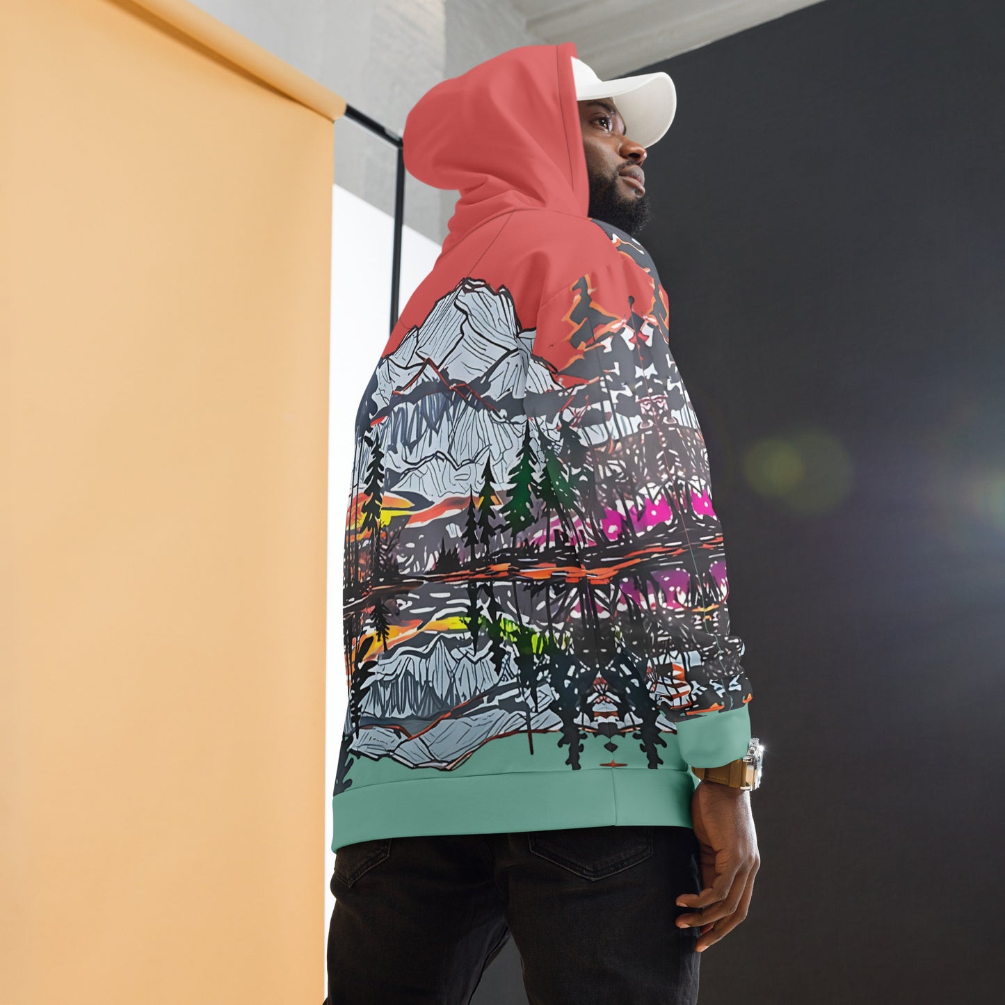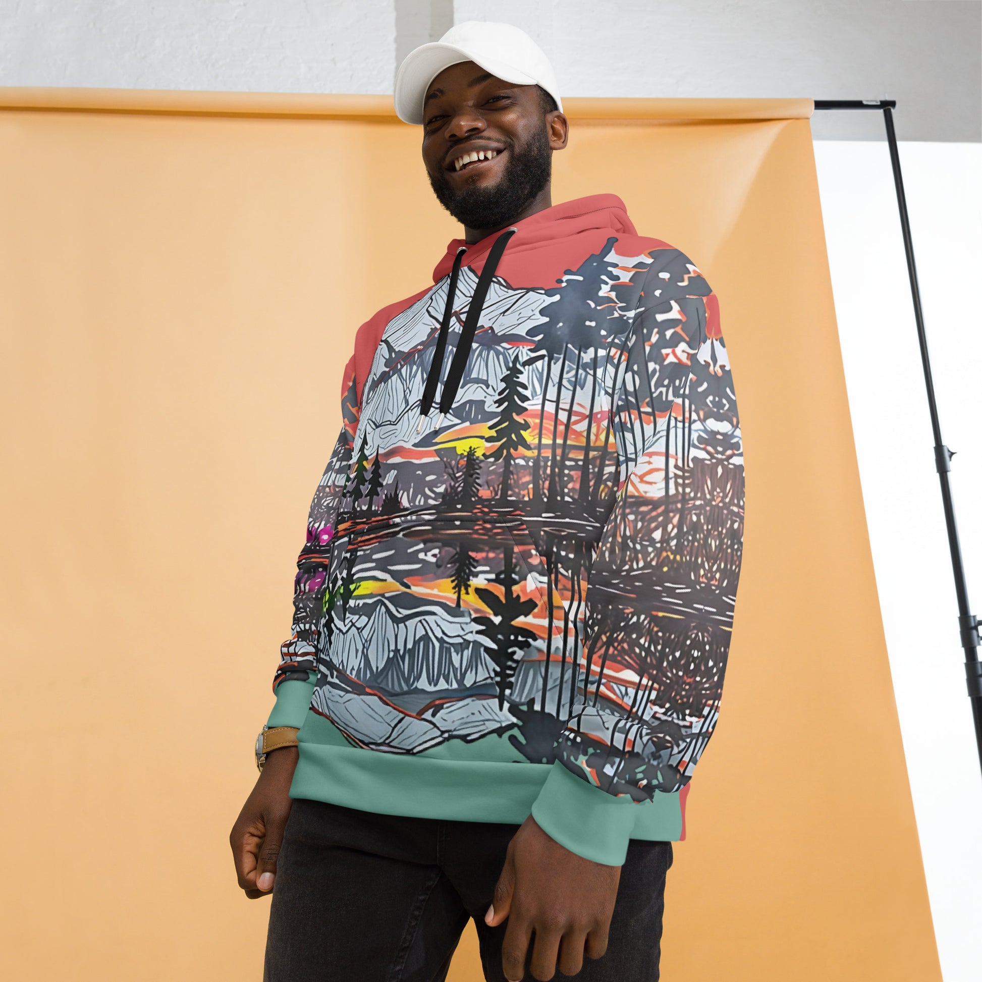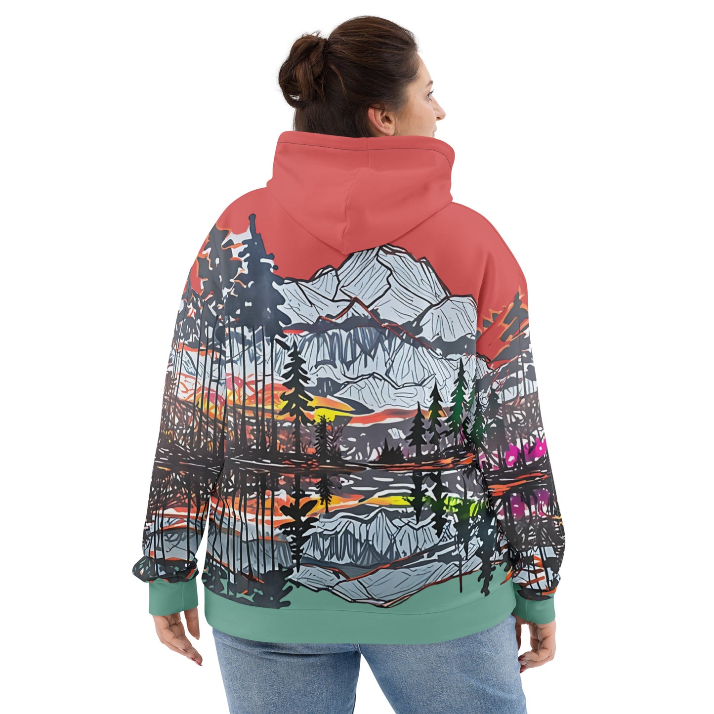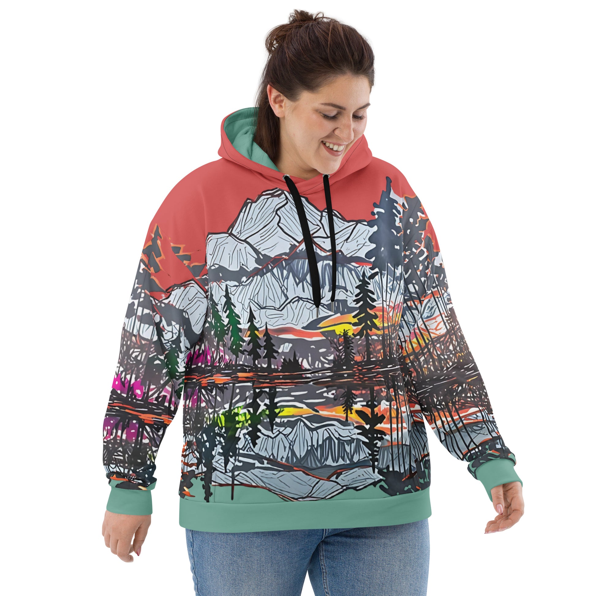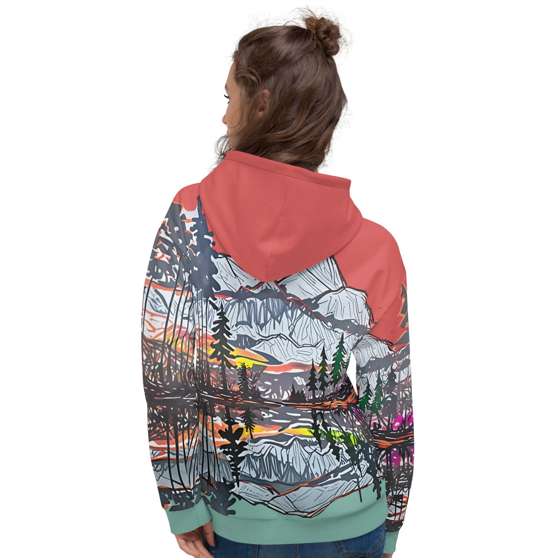 Capture the beauty of nature with this stunning all-over print hoodie! Featuring an artistic mountain landscape design with a vibrant sunset, this hoodie is perfect for outdoor enthusiasts, art lovers, or anyone looking to elevate their casual wardrobe. Made from a soft, lightweight fabric, it ensures maximum comfort and durability. The unisex fit and bold colors make it a versatile piece for both men and women. Perfect for cozy nights, hikes, or everyday wear, this hoodie combines style and functionality seamlessly.
