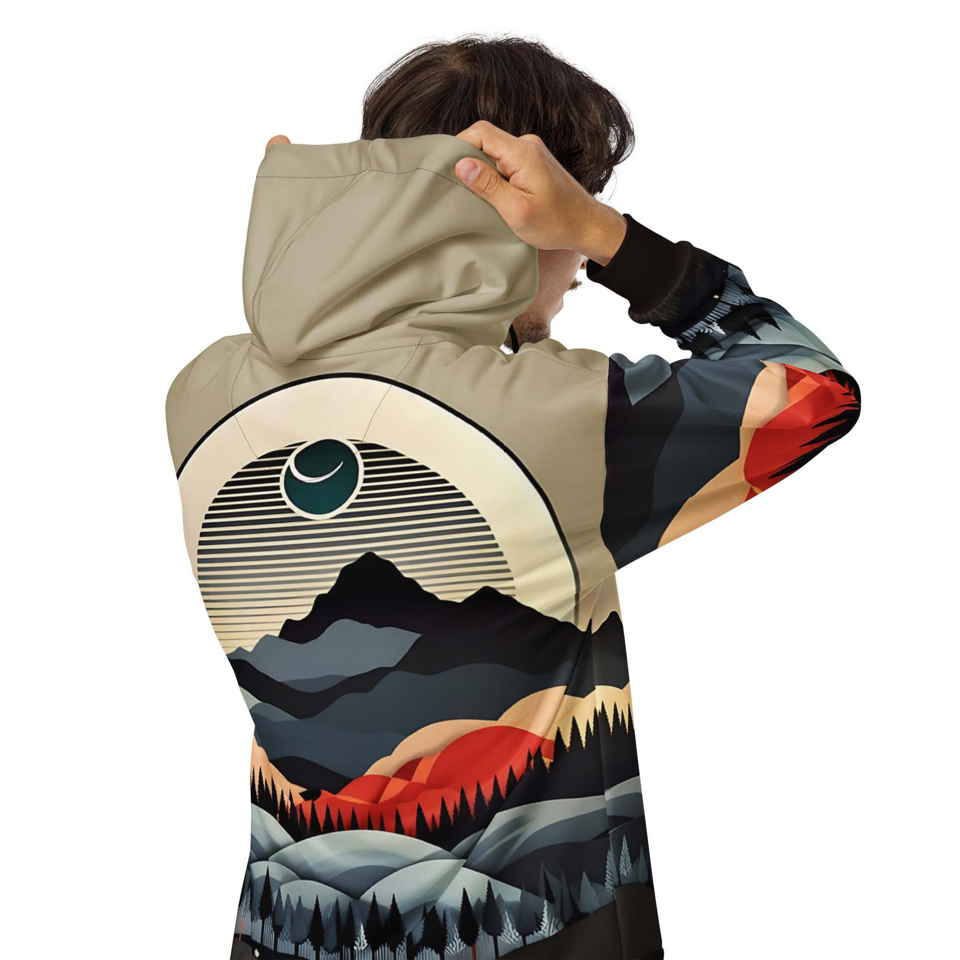 Bring the beauty of the mountains to your wardrobe with this all-over print hoodie. Featuring a scenic landscape design and crafted for comfort, this beige pullover is perfect for casual wear or outdoor adventures. Whether you're exploring or relaxing, this hoodie is a stylish way to express your love for nature.