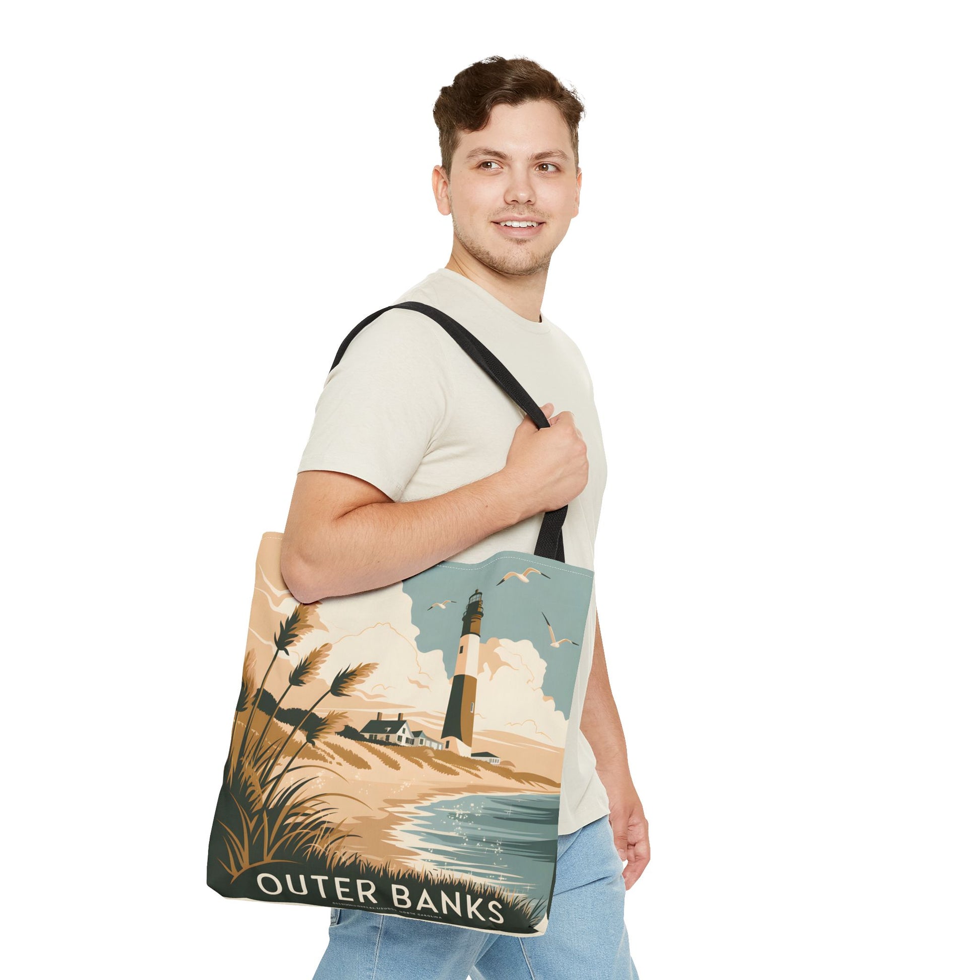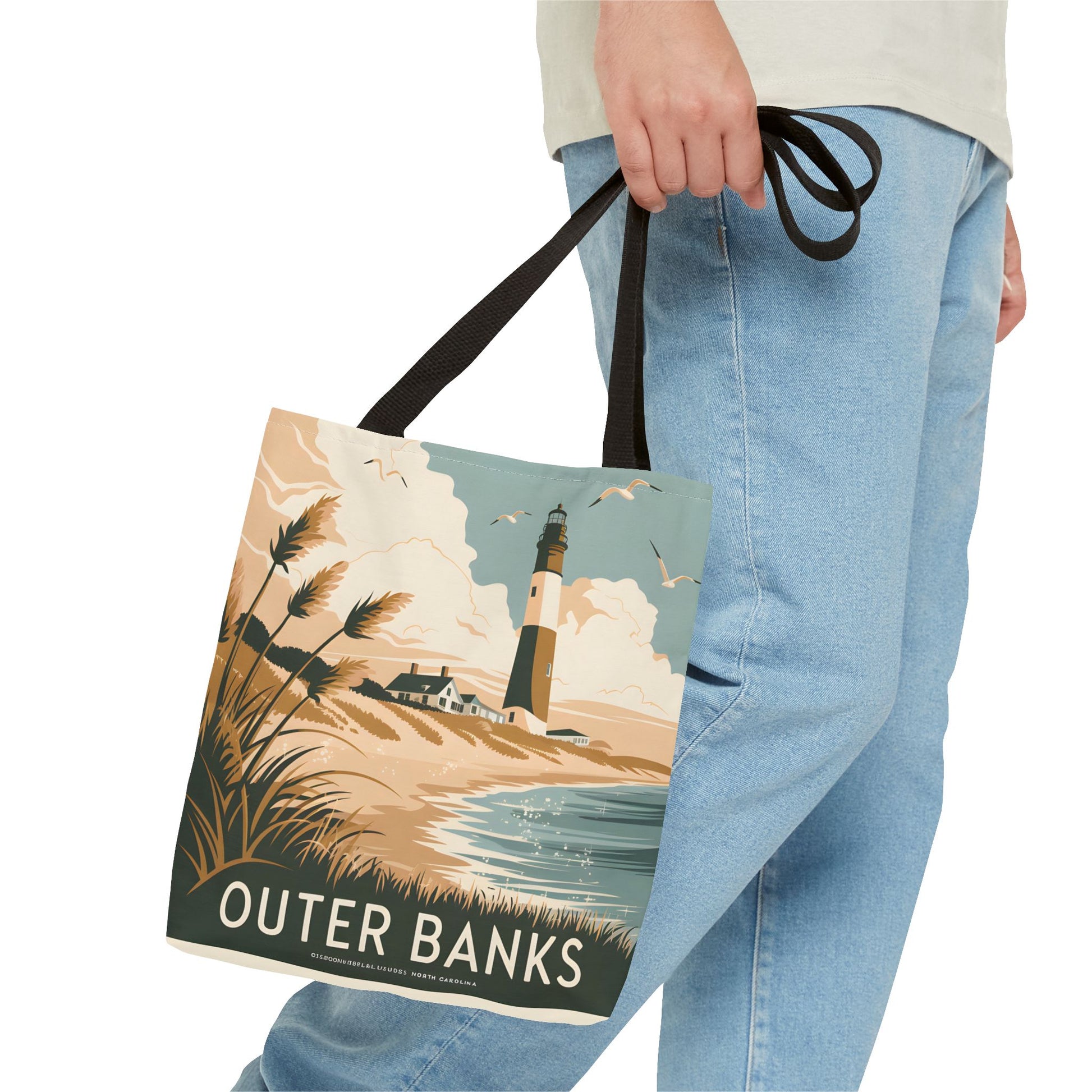 Outer Banks Lighthouse All Over Print Tote Bag Coastal Style Beach Accessory