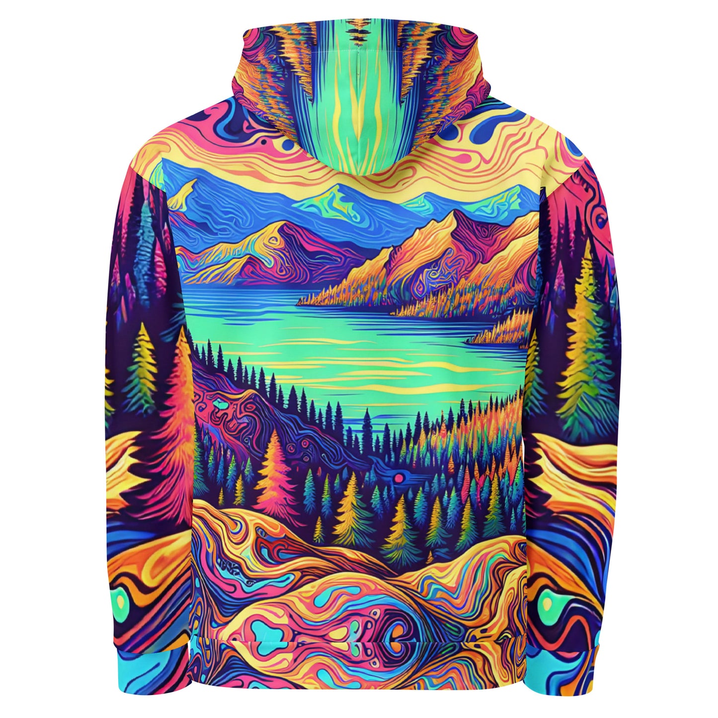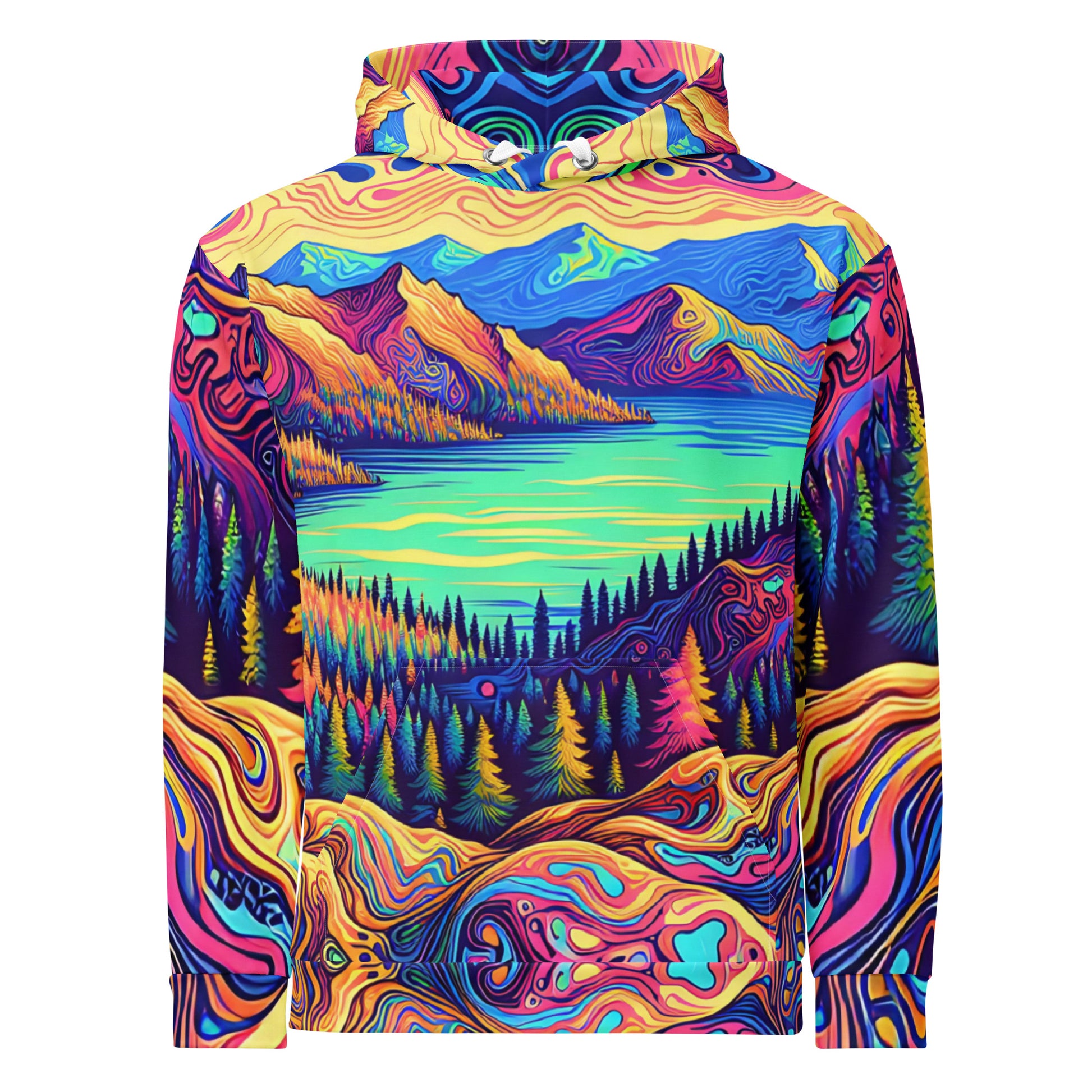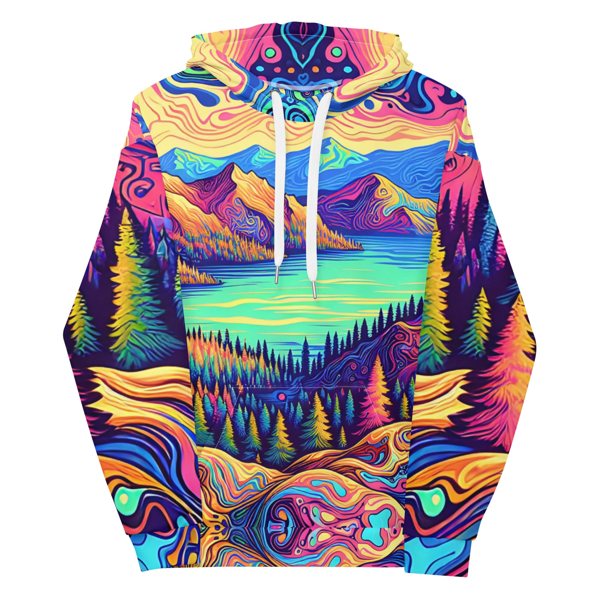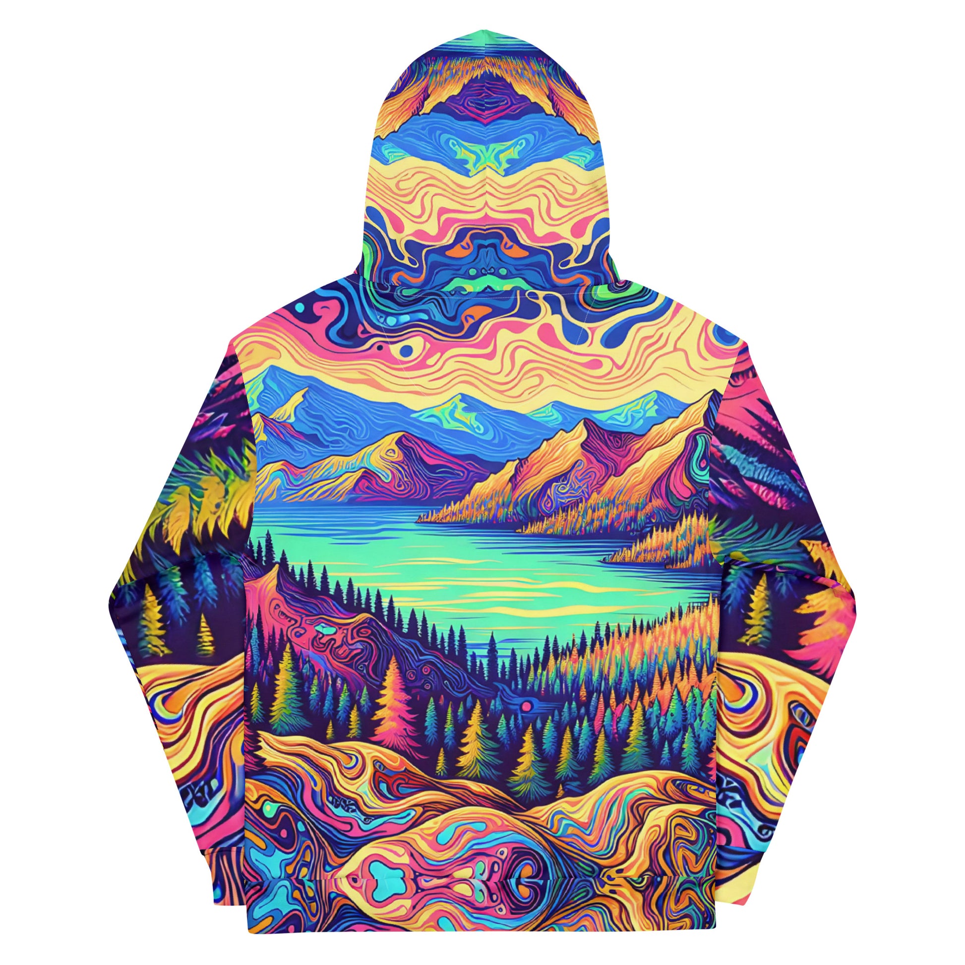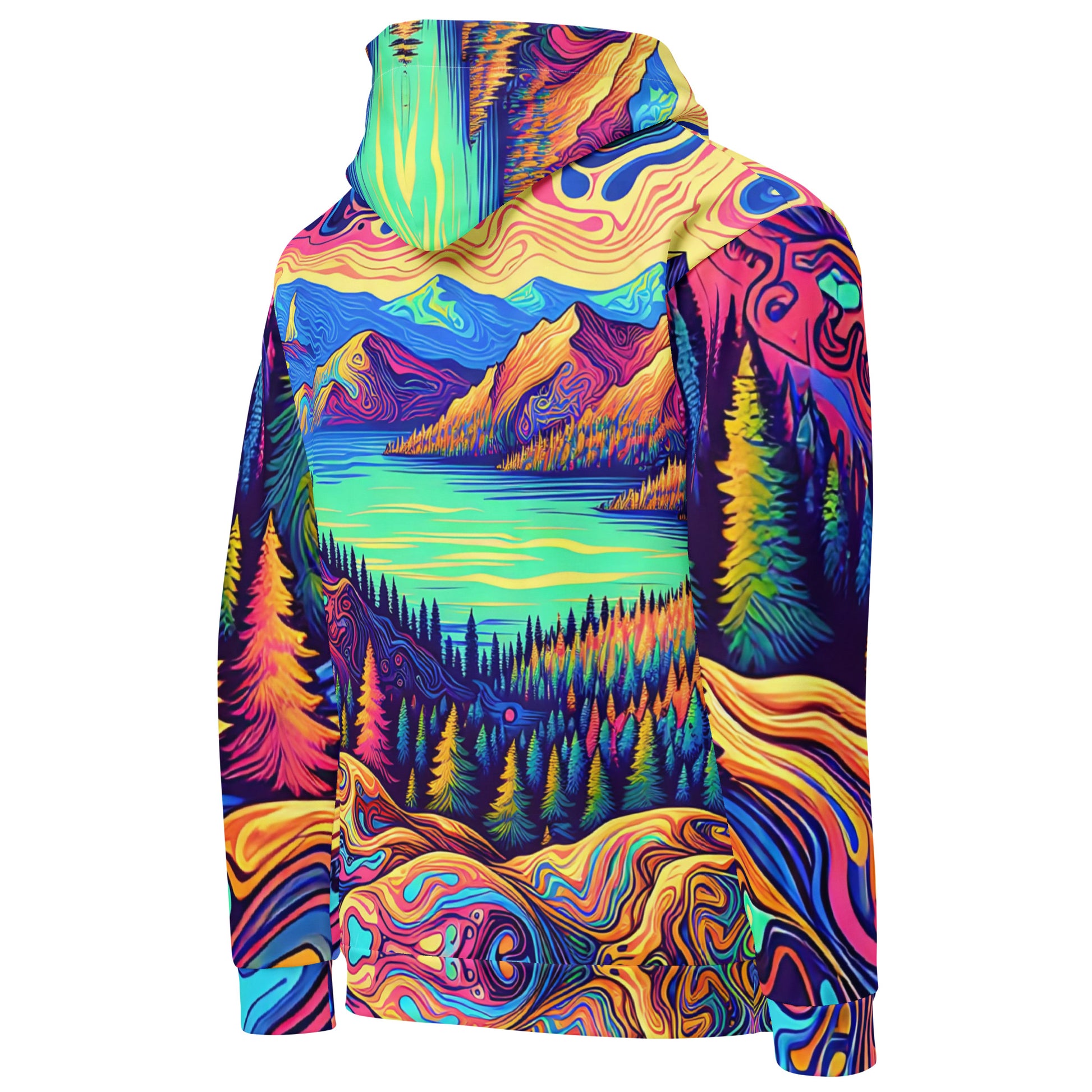 Psychedelic Hoodie Adult, Mountain Lake Forest Landscape All Over Print